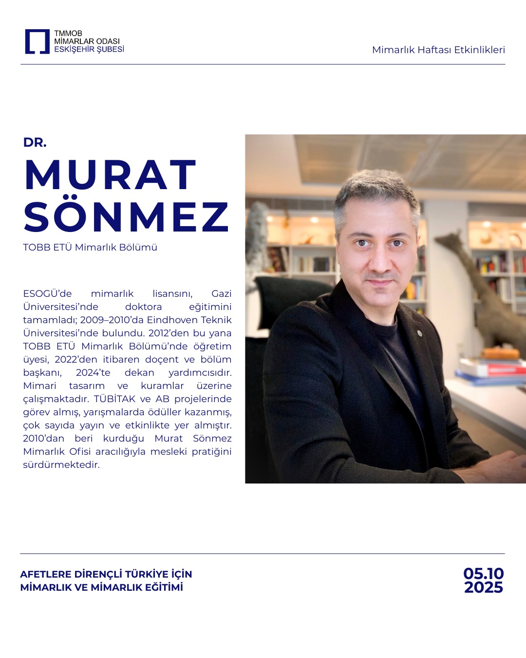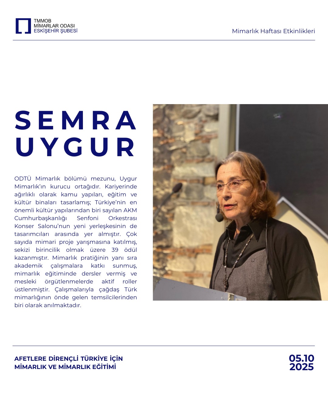 Günümüzde mimarlar artık yalnızca ideal koşullarda bir yapı tasarlamakla kalmamalı; afet sonrası yerleşim, geçici barınma, yeniden inşa süreçleri gibi senaryolar üzerinde de çalışmalı.