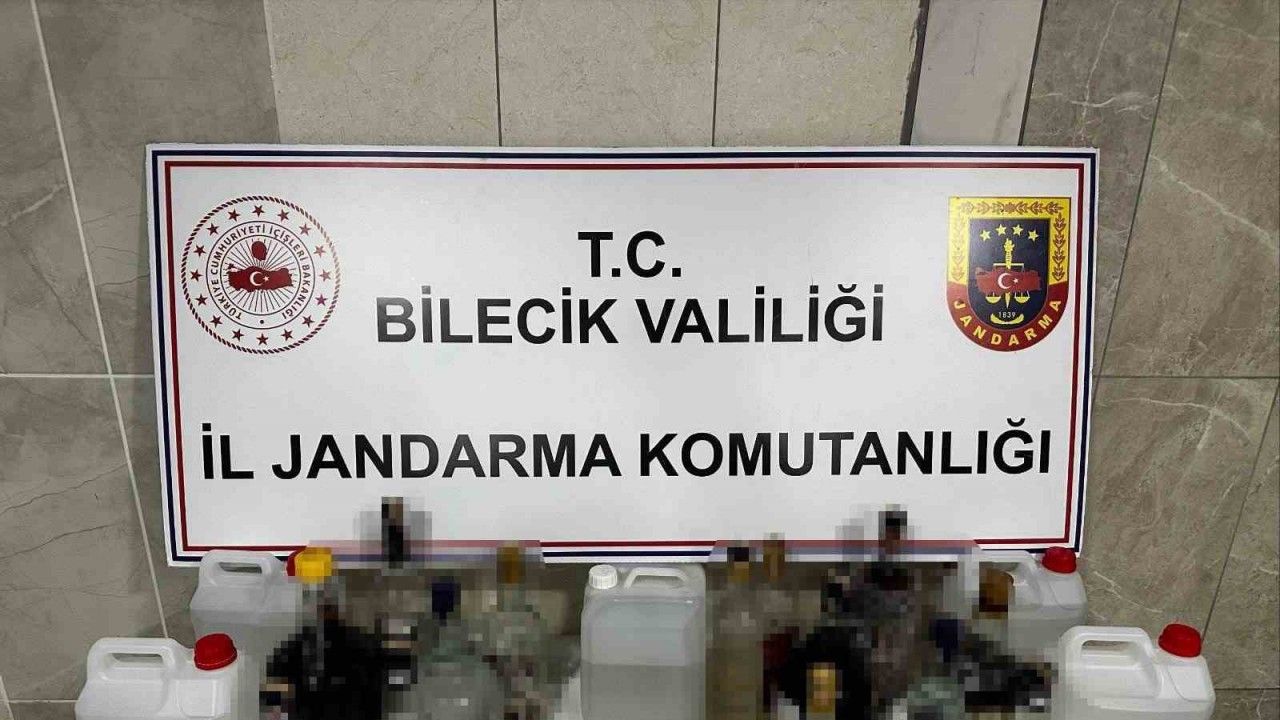 Bilecik’te jandarma ekiplerince düzenlenen operasyonda, kaçak ve sahte alkol yapımında kullanılan malzemeler ele geçirildi.