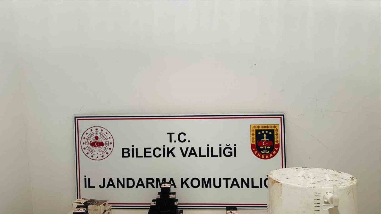 Edinilen bilgilere göre, Bilecik İl Jandarma Komutanlığı Kaçakçılık ve Organize Suçlarla Mücadele (KOM) Şube Müdürlüğü ekiplerince, elektronik sigara, tütün mamulleri ve makaron kaçakçılığıyla mücadeleye yönelik yürütülen çalışmalar kapsamında Söğüt İlçe Jandarma Komutanlığı ve TEM Şube ekipleriyle birlikte operasyon düzenlendi. Bilecik’in Söğüt ilçesine bağlı Küre Köyü’nde G.G.’ye ait ev ve işyerinde yapılan aramada; Bin 266 adet dolu makaron, 600 adet boş makaron, 2 adet 50 mililitre aroma, 1 adet 25 litrelik boş damıtım kovası ve hortumu ile 200 gram toz oksijenli temizleyici ele geçirildi. Ele geçirilen malzemelere el konulurken, Cumhuriyet Savcısının talimatıyla şüpheli G.G. hakkında 5607 Sayılı Kaçakçılıkla Mücadele Kanunu ve 4733 Sayılı Kanuna Muhalefet suçlarından adli tahkikat başlatıldı.