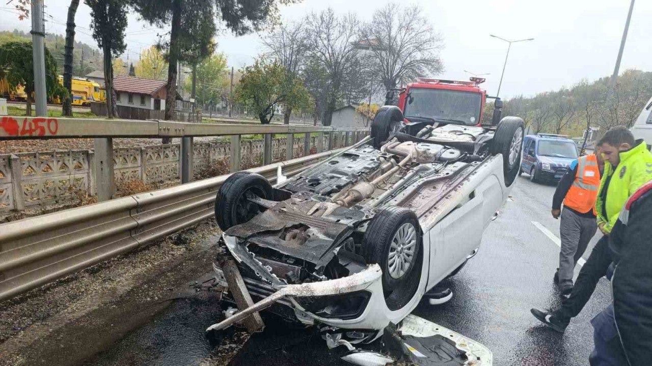 Bilecik’in Pazaryeri ilçesinde bir sürücü, direksiyon hakimiyetini kaybetmesi sonucu takla atan araçta yaralandı.