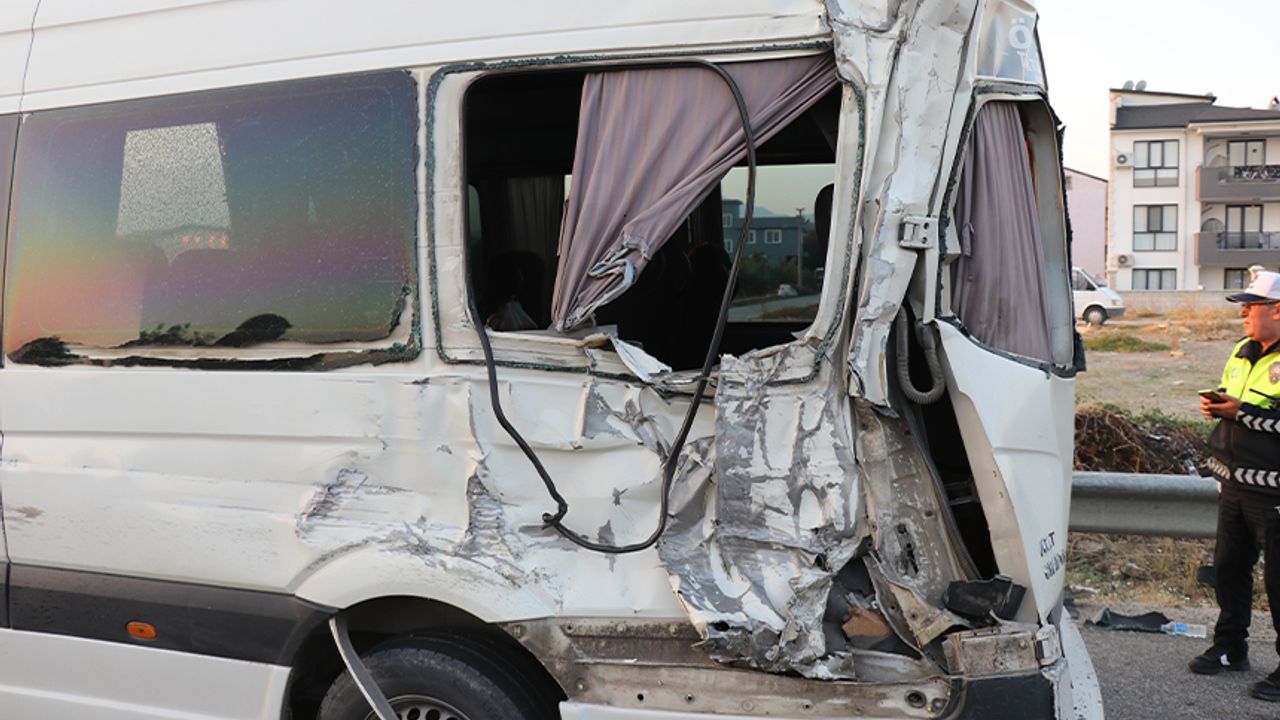 O sırada aynı yönde ilerleyen H.K. yönetimindeki 34 KL 6085 plakalı kamyon, çarpmamak için manevra yapsa da aracın dorsesi servis aracına çarptı.