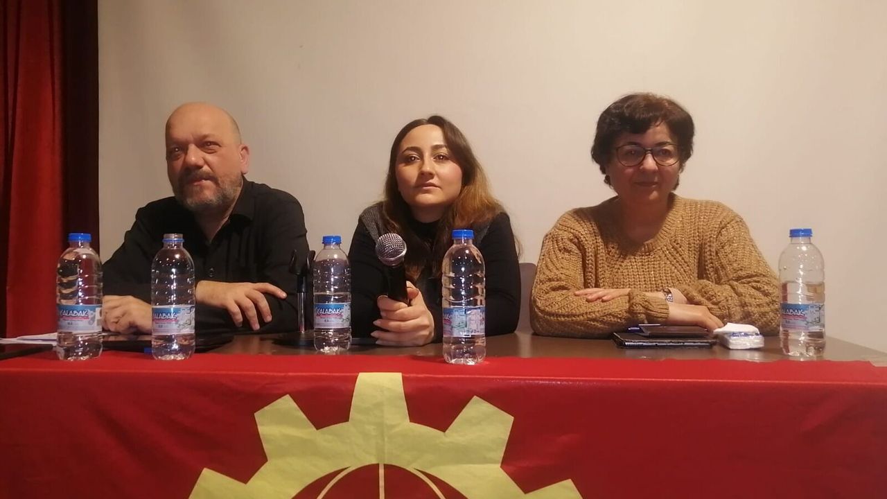 Özdilek Kültür Merkezi’nin ev sahipliği yaptığı panel yaklaşık iki saat sürdü. Moderatörlüğünü EMEP İl Başkanı Ceren Kökoğlu’nun üstlendiği panele konuşmacı olarak Evrensel Gazetesi Genel Yayın Yönetmeni Hakkı Özdal ve EMEP MYK üyesi Nuray Sancar katıldı. Sancar, NATO’nun emperyalist devletlerin savaş örgütü olduğunu söyledi. “NATO’nun kuruluş yıllarında dünyada sosyalizmin artan itibarı, kurulan halk demokrasileri ABD emperyalizminin dünyadaki etki alanını kısıtlıyordu” diyen Sancar, “Bunlarla beraber tüm ülkelerde işçi hareketleri gelişiyordu. Bu hareketleri durdurmak ve karşısına set çekmek isteyen ABD emperyalizmi ve Avrupalı emperyalist devletler için NATO bir ihtiyaç haline gelmişti” dedi.