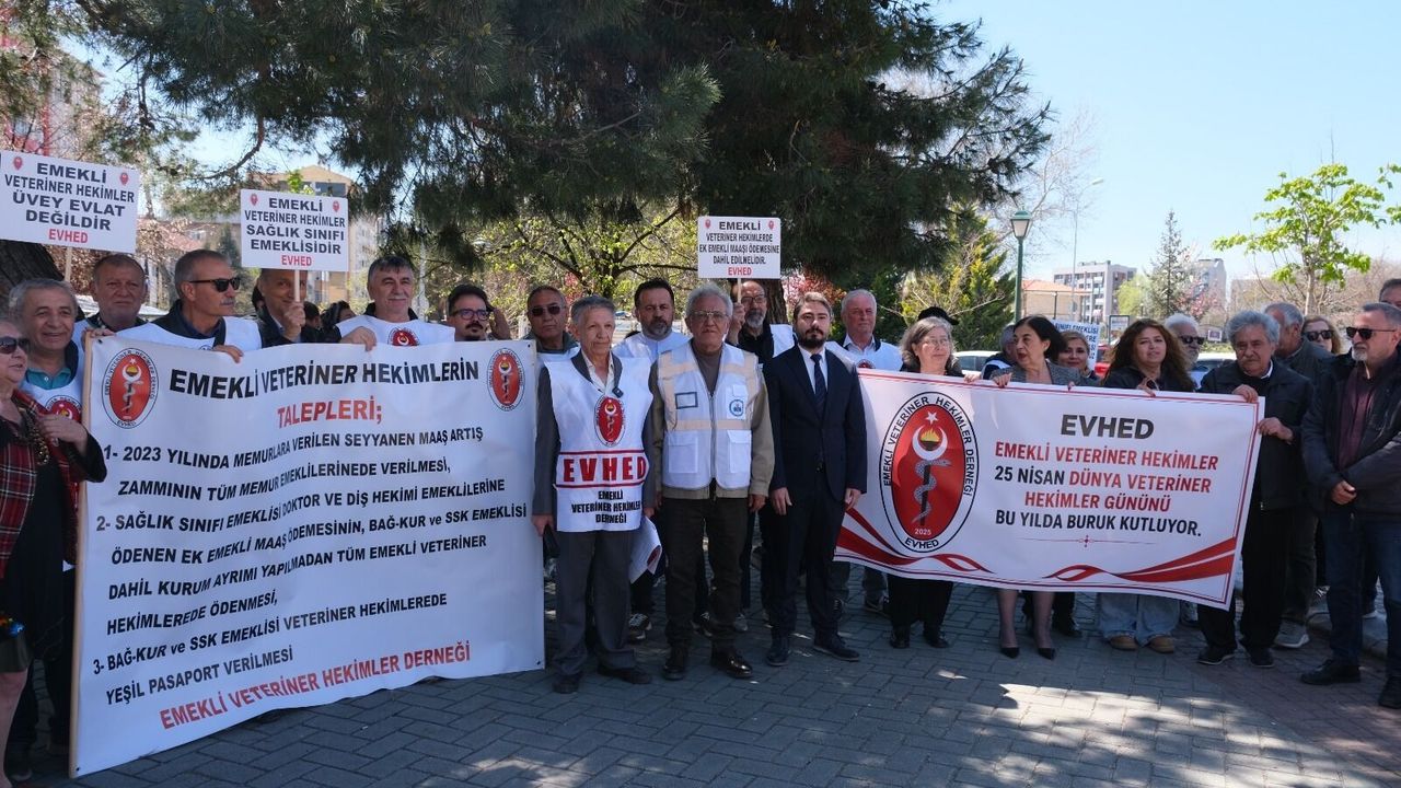 Emekli Veteriner Hekimleri Derneği Başkanı Uğur Görür, insanca yaşanabilir bir gelir istediklerini haykırarak, “Bizim talebimiz ayrıcalık değil, eşitliktir. Bizim isteğimiz imtiyaz değil, adalettir. Yıllarca hizmet verdiğimiz bu ülkenin, bize hak ettiğimiz değeri vermesini istiyoruz” dedi.