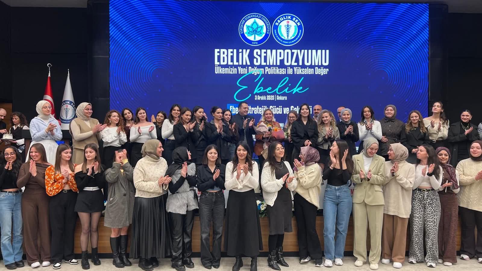 Sağlık-Sen Eskişehir Şubesi ile Osmangazi Üniversitesi (OGÜ) işbirliği ile düzenlenen sempozyuma Ankara ev sahipliği yaptı. Sağlık-Sen Genel merkezinde gerçekleştirilen sempozyumun açılışı, Genel Başkan Mahmut Faruk Doğan’ın yaptığı konuşma ile başladı. AK parti Afyonkarahisar Milletvekili Dr. Hasan Arslan, Sağlık Bakanlığı Genel Müdürü Doç. Dr. Muhammed Emin Demirkol, Eskişehir Osmangazi Üniversitesi Sağlık Bilimleri Fakültesi Dekanı Prof. Dr.Fatma Deniz Sayıner’in konuşmacı olarak katıldığı “Ülkemizin Yeni Doğum Politikası ve Yükselen Değer Ebelik” konulu sempozyuma katılım beklenin üzerinde oldu. Ülke genelindeki sendika şube başkan, temsilcileri ile ebelerin de yer aldığı sempozyumda, ebelik mesleğinin güncel sorunları masaya yatırılarak, bilimsel bilgi paylaşımında bulunuldu. Sendikasının öncülük yaptığı sempozyumun başarılı bir şekilde tamamlandığını belirten Sağlık Sen Şube Başkanı Hasan Hüseyin Köksal “81 ilden gelen ebe meslektaşlarımız ve öğrencilerin büyük ilgi gösterdiği sempozyumda, ebelik mesleğinin güncel sorunları masaya yatırıldı, bilimsel bilgi birikimi paylaşıldı ve mesleki hakların güçlendirilmesine yönelik önemli değerlendirmeler yapıldı. Katılımın yüksekliği, ebelik mesleğine verilen değeri bir kez daha ortaya koydu. Program sırasında ESOGÜ Sağlık Bilimleri Fakültesi Dekanı Prof. Dr. Fatma Deniz Sayıner hocamızın doğum günü de hep birlikte kutlanarak güne anlamlı bir renk kattı. Ebelik mesleğinin gelişimine katkı sunan bu önemli organizasyona katılım sağlayan hocalarımıza ve tüm misafirlerimize teşekkür eder, sağlık hizmetlerinin niteliğini artırmaya yönelik çalışmalarımızı kararlılıkla sürdüreceğiz” dedi. Sempozyum bitiminde katılımcı konuşmacı ve davetlilere Sağlık-Sen tarafından plaket takdim edildi.