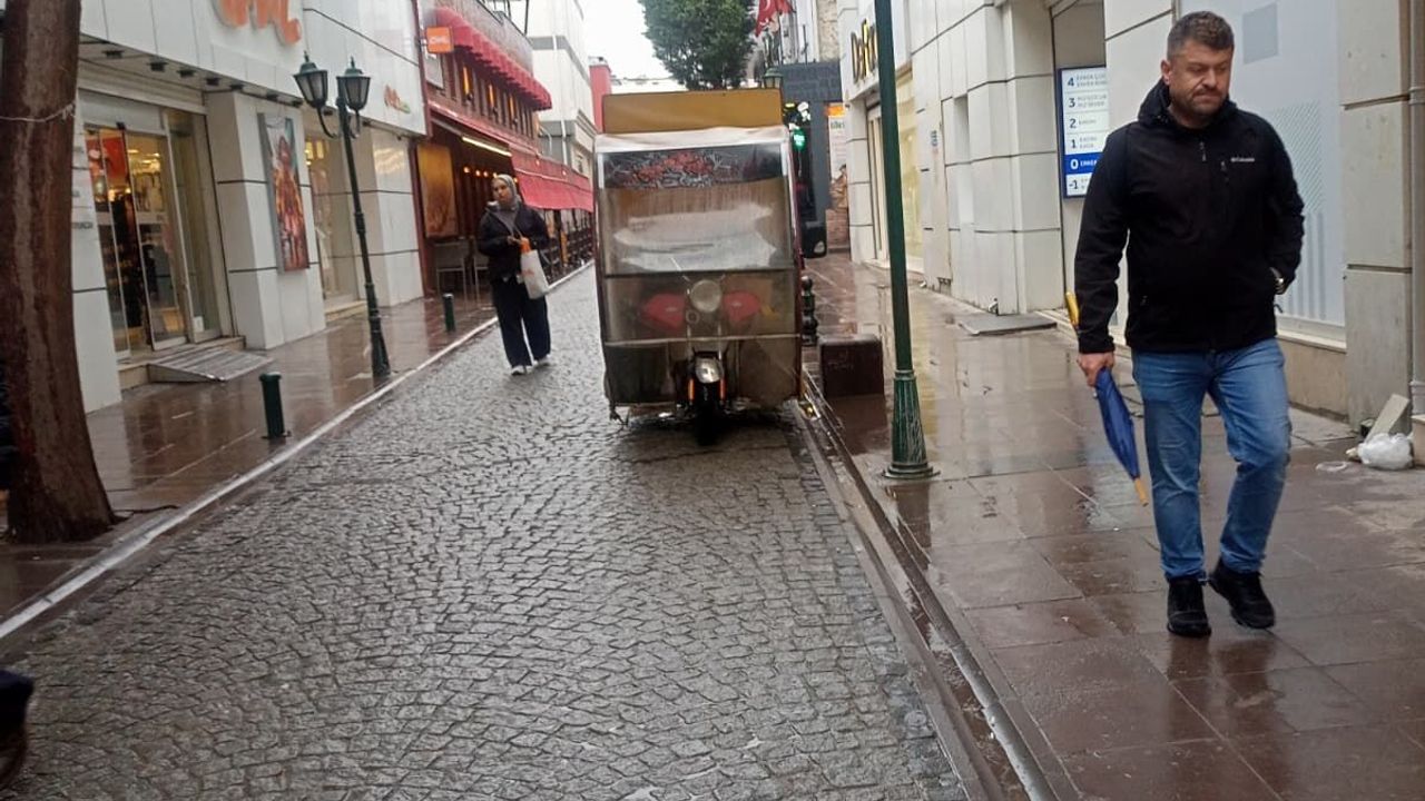 Özellikle yağışlı havada kayganlaşan zeminde, daralan yol hem yayalar hem de diğer araçlar için ilerlemeyi zorlaştırdı.