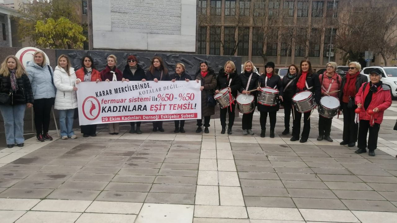 Eşitlik olduğunu iddia edenlere de yüklenen Dernek Başkanı Sibel Erenoğlu “1935 seçimlerinde parlamentoda yüzde 4,6 olan kadın oranı bugün hala yüzde 30’lara dahi çıkamıyor. Kadınlar, kotalarla değil yüzde 50 eşit temsille var olmak istedikleri parlamento ve yerel meclisler de hala azınlıktalar. Eşitlikçi olduğunu iddia eden partiler dahi, listelerde kadınları seçilebilecek sıralara yerleştirmiyorlar. Aynı anlayış, yerel yönetimlere ve devlet yönetimine de aynen yansıyor. Bu durum, ataerkil bakış açısının bir sonucu olarak toplumsal cinsiyet eşitsizliğinin hala sürmekte olduğunun bir kanıtıdır. Kadın kuruluşlarının ve genelde kadınların eşitlik mücadelesi, topyekün bir destekten yoksun bulunuyor. Eşitlik, parti organlarında da sağlanamıyor. Partilerde yönetim görevlerini erkekler dolduruyor. Bütüncül politikalarla, olumlu ayırımcılık yaparak, fırsat öncelikleri sağlayarak özel önlemlerle temsilde adaleti sağlamak gerekiyor. Ancak, biliyoruz ki eşitliği sağlayacak temel güç kadınlardır. Mücadelenin kazandıracağını biliyoruz. 1923’lerde Nezihe Muhittin, Latife Bekir, Sabiha Zekeriya Sertel’in başkanlığında kurulan Kadınlar Halk Fırkası’ndan bu yana çok yol aldık., Halide Edipler’ den, Afet İnan’lardan aldığımız güçle dayanışarak, yılmadan kazanacağımıza inanıyoruz” ifadelerini kullandı.Vilayet meydanındaki tören yapılan basın açıklamasının ardından sona erdi.Kadınlar yine bando eşliğinde Hamamyolu Caddesi üzerindeki dernek binasına kadar bir yürüyüş gerçekleştirdi.