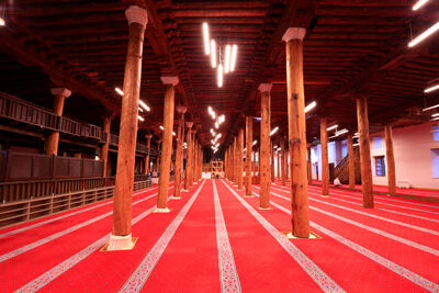 Sivrihisar Ulu Camii, Anadolu’nun ahşap direkli en büyük camisi olma özelliğini taşımaktadır. Caminin çatısı, ardıç ve sarıçam ağaçlarından yapılmış 67 ahşap sütun tarafından taşınıyor. Bu sütunlar, yalnızca taşıyıcı unsur değil, aynı zamanda mekâna estetik bir derinlik ve ritim kazandıran mimari öğeleri… Ahşap direkli cami geleneğinin en görkemli örneklerinden biri olan yapı, Selçuklu döneminin doğayla uyumlu mimari yaklaşımını günümüze taşıyor. Ahşap malzemenin ustalıkla kullanımı, dönemin teknik bilgi düzeyini ve sanat anlayışını gözler önüne seriyor.