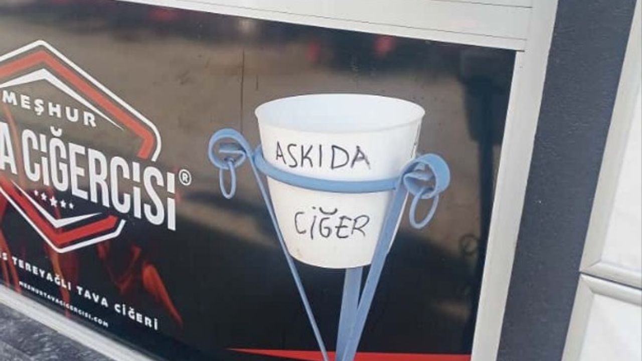 Eskişehir'de iş yerinin önüne yerleştirilen metal askı üzerine “Askıda Ciğer” yazısı asan işletme, ihtiyaç sahiplerinin ücretsiz olarak yemek yiyebilmesine olanak tanıyor.
