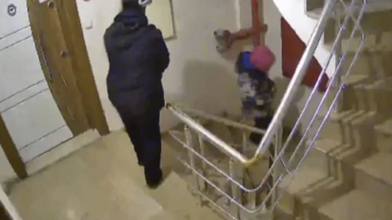 Hırsızlık anları binadaki bir dairenin güvenlik kamerasına yansıdı.