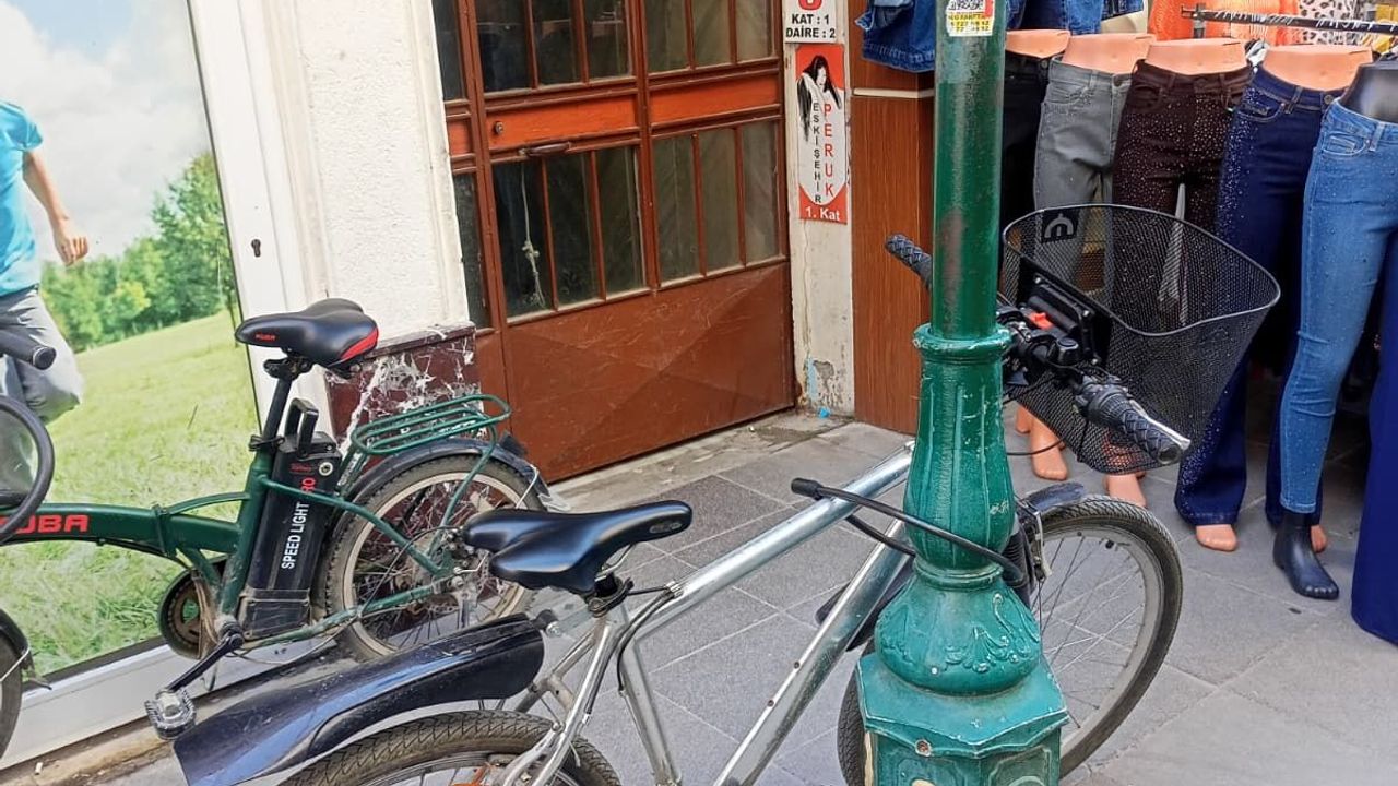 Pasaj kapısının önüne ve aydınlatma direğine kilitlenen bisiklet nedeniyle kaldırımın bir bölümü kullanılamaz hale geldi. Özellikle mağaza girişine yakın noktada bırakılan bisikletin, hem müşterilerin hem de yayaların geçişini güçleştirdiği görüldü.