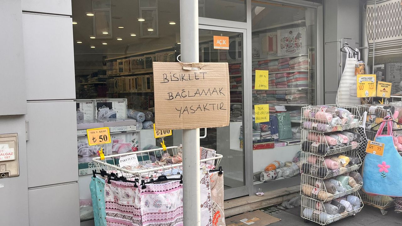 Hamamyolu civarında bir esnaf, bu duruma kendi imkânıyla çözüm getirmeye çalışarak direğe “Bisiklet bağlamak yasaktır” yazısı astı. Esnafın hazırladığı uyarı notu, bölgeden geçen vatandaşların da dikkatini çekti. Çevredeki esnaf, gelişigüzel park edilen bisiklet ve motosikletlerin hem görüntü kirliliği oluşturduğunu hem de özellikle yoğun saatlerde yayaların geçişini zorlaştırdığını ifade ediyor.