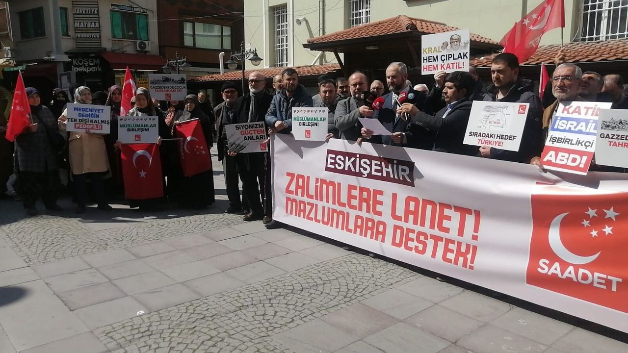 Cuma namazının ardından Çarşı Camisi önünde bir araya gelen partililer, İsrail’in Gazze ve İran’a yönelik başlattığı saldırılara tepki gösterdi. İsrail zulmüne öfke yağdıran partilierin eylemine çarşı esnafı da katılarak destek verdi. İsrail zulmüne asla boyun eğmeyeceklerini belirten Saadet Partisi Tepebaşı İlçe Başkanı Muhammed Ali Köse “Bugün burada sadece bir basın açıklaması yapmak için değil; başta İslam coğrafyası olmak üzere dünyanın dört bir yanını saran zulüm ateşine karşı birer İbrahimi damla olmak ve mazlumun kimliğine bakmaksızın onunla omuz omuza durduğumuzu tüm dünyaya ilan etmek için toplandık. Millî Görüş hareketi olarak bizler, tarih boyunca olduğu gibi bugün de coğrafya, mezhep ve kimlik ayrımı yapmaksızın zalimin karşısında elif gibi dimdik duruyoruz. Aylardır dünyanın gözü önünde, tarihin kaydedebileceği en vahşi, en alçak soykırımlardan biri Gazze’de işlenmektedir. Gazze’de dökülen her damla kan, bu zulme sessiz kalanların vicdanına sürülmüş kara bir lekedir. Bu katliam durana, abluka tamamen kalkana dek durmayacağız, susmayacağız” dedi.