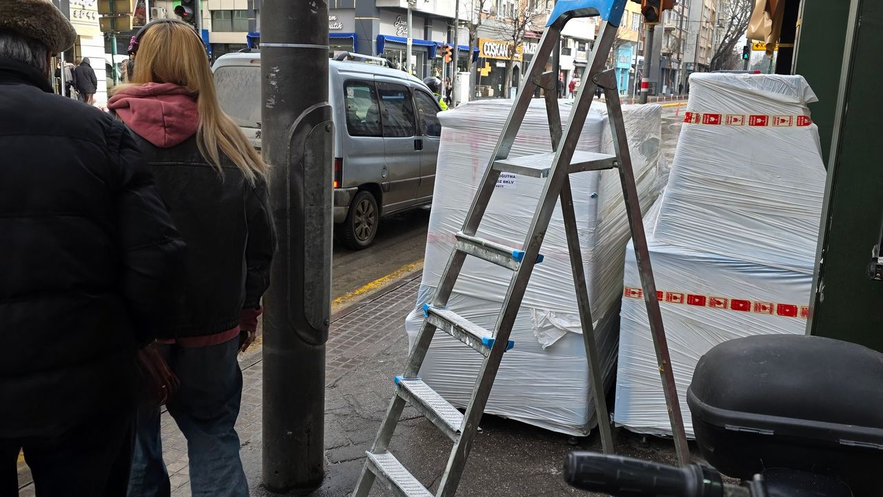 Kent merkezinin en yoğun bölgelerinden biri olan Arifiye Mahallesi İki Eylül Caddesi üzerinde bulunan bir işletme, nakliye veya tadilat gerekçesiyle streç filmlere sarılı büyük ürün dolaplarını ve bir merdiveni kaldırımın üzerine bıraktı. Tramvay yolunun hemen yanında bulunan ve gün içinde binlerce kişinin kullandığı kaldırımın büyük bir kısmının eşyalarla kapatılması, yaya trafiğini olumsuz etkiledi. Zor anlar yaşayan vatandaşlar, daralan kaldırımda ilerleyebilmek için tek sıra halinde yürümek zorunda kaldı. Yayalar, eşyaların bıraktığı dar boşluktan geçebilmek için zaman zaman karşı yönden gelenlerin geçişini bekledi. //// Emrah Köse /////