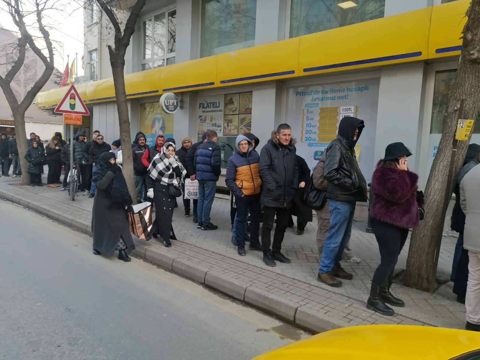 Gerekli işlemeleri için sabah erken saatlerde PTT önünde oluşan kuyruğa giren bazı vatandaşlarda, görevlilere çağrıda bulunarak engelli şahısla bebekli annelerin soğukta beklememeleri için içeriye alınmasını istedi. Görevlilerin olumsuz cevabı üzerine bebek arabasına koyduğu küçük çocuğu ile tekerlekli sandalye üzerinde bir yakınının yardımıyla gelen şahıs, mesai saatinin başlaması için soğuk altında bekledi. Yaşanan duruma tepki gösterenler görevlilerin tutumunu eleştirdi. Bebekli anne ile engelli şahsın mesai saati öncesi içeriye alınmaması kuyrukta bekleyen vatandaşlarda isyan etti. Bebekli anne ile engelli şahıs, görevliler tarafından mesai saati öncesi içeriye alınmayınca diğer vatandaşlar gibi soğuk altında bekletildi. Aşırı soğuktan etkilenen engelli vatandaş “Bir işlem yaptırmak için PTT merkezine çağrıldım. Bu yüzden mecburen dışarıya çıkmak zorunda kaldım. Bir yakınımın yardımıyla getirildiğim şube önünde kapının açılmasını bekledik. Güvenlik görevlileri tarafından soğukta beklemek yerine içeriye alınabilirdik. Benim gibi mağdur olan bebekli anne ve yaşlılarda vardı. Mesasi saati başlayıncaya kadar içeride bekleyebilirdik” diye dert yandı.
