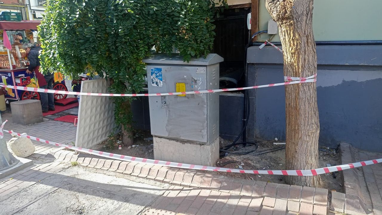 Eskişehir’in en yoğun noktalarından biri olan Çarşı Camii önünde bulunan elektrik panosunun çevresi güvenlik amacıyla şeritlerle kapatıldı. Panonun çevresinde yapılan düzenleme ya da bakım çalışması nedeniyle alan geçici olarak araç ve yaya trafiğine kapatıldı.