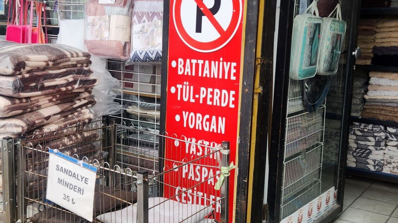 Eskişehir merkezinde bir esnaf, battaniye, yorgan, perde ve minder gibi ürünlerini tanıttığı bölümün önüne “Park Etmek Yasaktır” tabelası yerleştirdi. Amaç, araçların dükkân önünü kapatmasını önlemek ve ürünlerin rahatça sergilenmesini sağlamak.