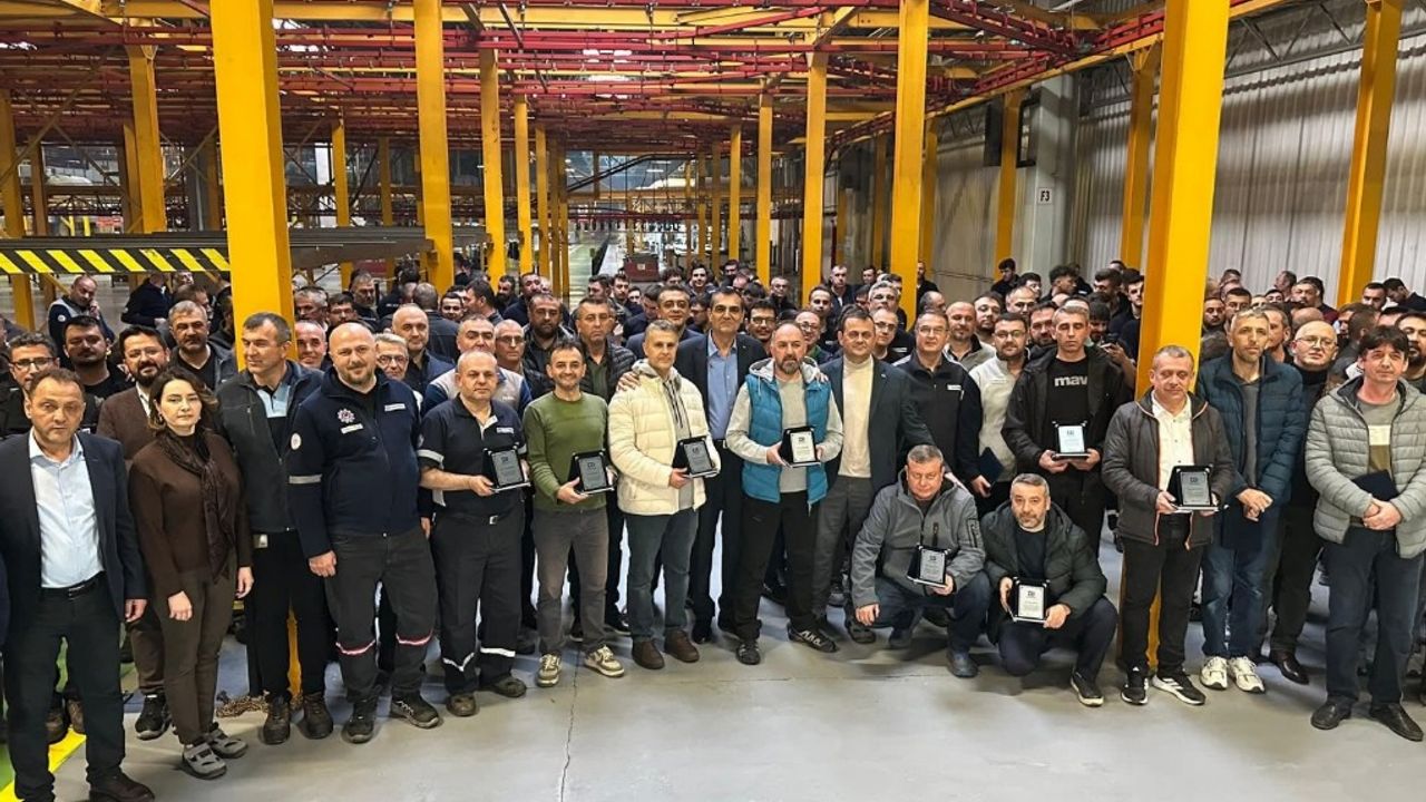 Eskişehir’de faaliyet gösteren demir döküm fabrikasında çalışan 64 işçinin emeklilik hayali gerçeğe dönüştü. Fabrikanın çeşitli birimlerinde çalışan ve emekli olmaya hak kazanan işçiler için üyesi oldukları sendika tarafından bir tören düzenlendi. Konu ile ilgili edinilen bilgilere göre, Türk-İş Konfederasyonuna bağlı Türk Metal Sendikası Eskişehir Şubesi tarafından düzenlenen törene emekli olan 64 kişi ile çalışan sendika üyeleri katıldı. Fabrika sahasın da gerçekleştirilen törene katılan Sendika Şube Başkanı Orhan Demir, üyelerine verdikleri hizmet ve sendikal mücadeleden dolayı teşekkür etti.Sendika tarafından hazırlanan plaketler Şube Başkanı Demir tarafından emekliye ayrılan üyelere takdim edildi.64 işçi plaket töreniyle birlikte çalışan arkadaşlarıyla vedalaşarak emekliliğe uğurlandı.