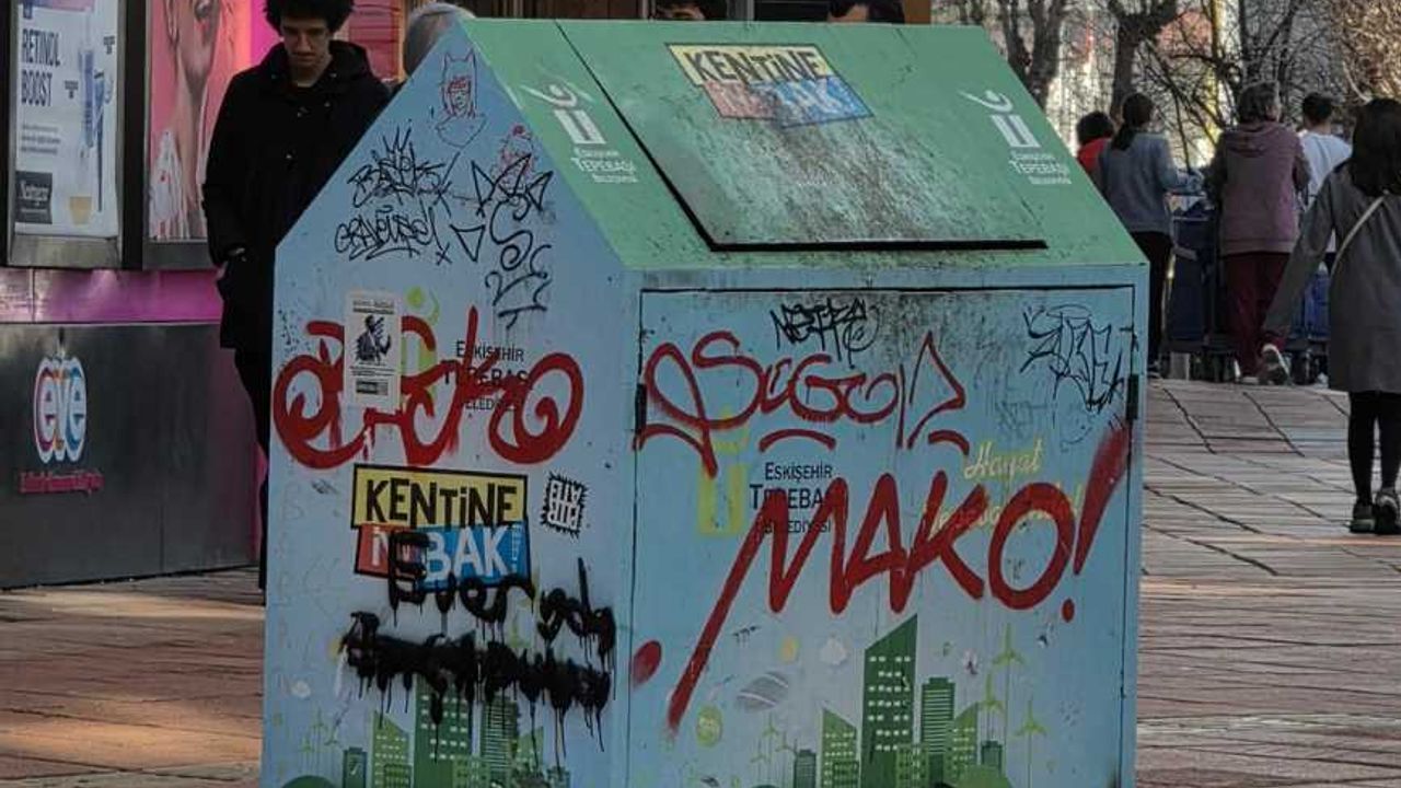 Tepebaşı Belediyesi’ne ait atık toplama ünitelerinin yüzeyleri, sprey boya ile yazılan yazılar ve yapıştırılan etiketlerle tahrip edilmiş durumda. Bu durum, caddeden geçen vatandaşların tepkisini çekerken, görsel kirliliğin özellikle işlek bölgelerde estetik kaybına yol açtığı gözlendi.