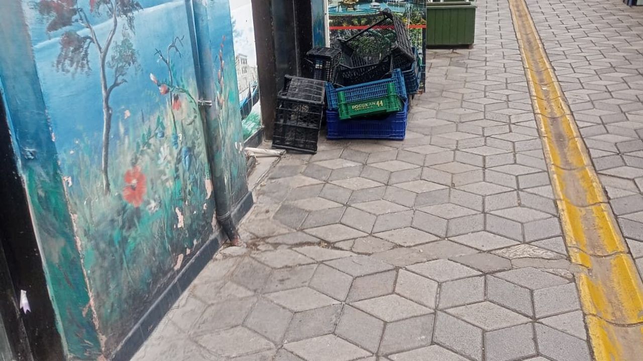 Görüntülerde, iş yerlerinin önüne gelişigüzel şekilde bırakılan plastik kasaların, özellikle dar geçişlerde yayaların hareketini zorlaştırdığı görülüyor. Kaldırımın bir bölümünün bu şekilde işgal edilmesi, yayaların yolun diğer kısmına yönelmesine neden olabiliyor.