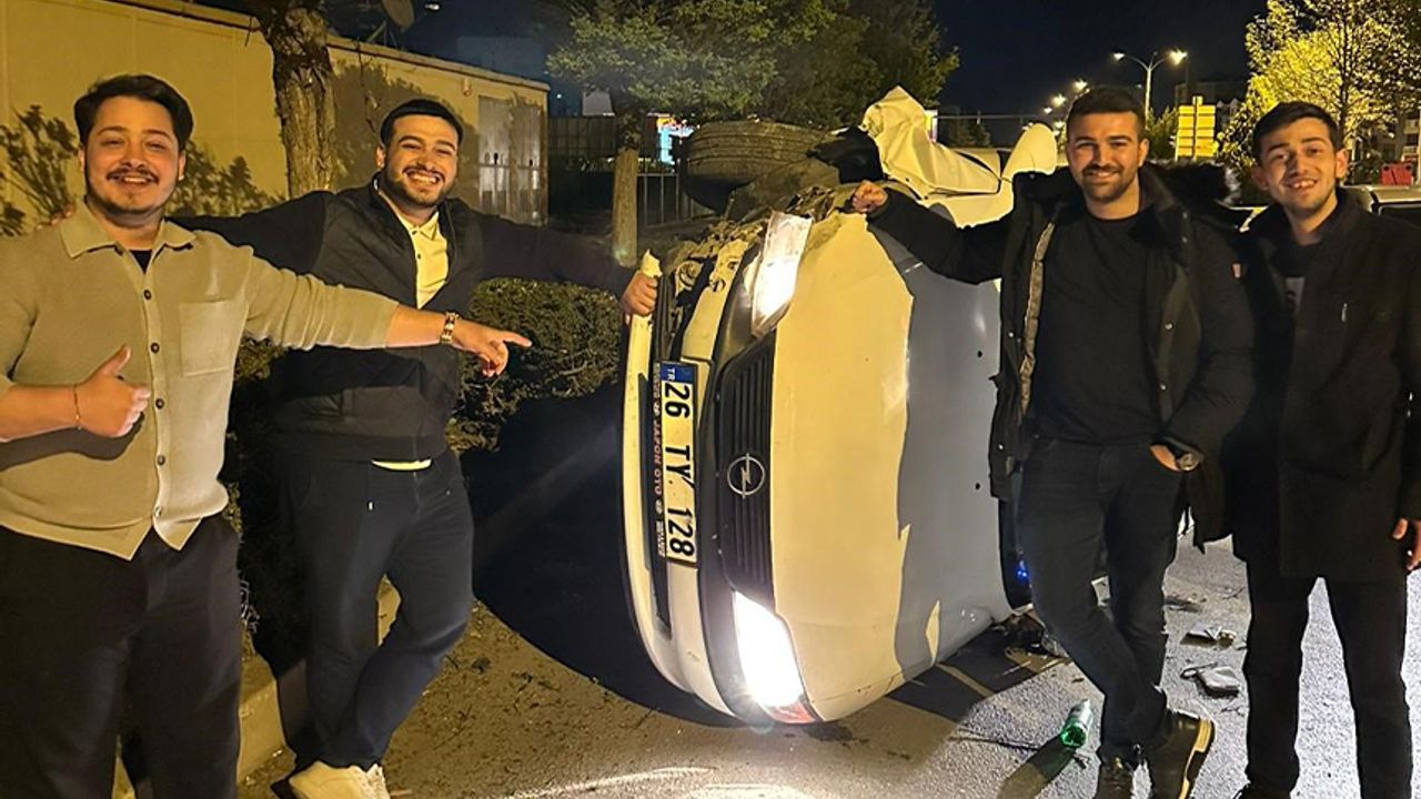 Kazanın ardından olay yerine gelen bir grup genç, yan yatmış otomobil ile hatıra fotoğrafı çekindi. Kimsenin bulunmadığı araç, gençler için ilginç bir fotoğraf fırsatı oluşturdu. Yaşanan bu anlar, kazanın ardından sosyal medyada da gündem oldu.