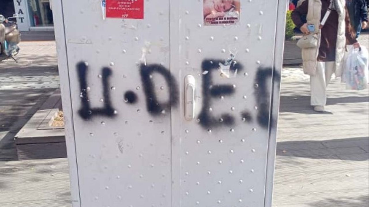 Kent merkezinde yaya trafiğinin yoğun olduğu noktada yer alan panonun üzerine siyah boya ile yapılan yazı, çevrede dikkat çekti.