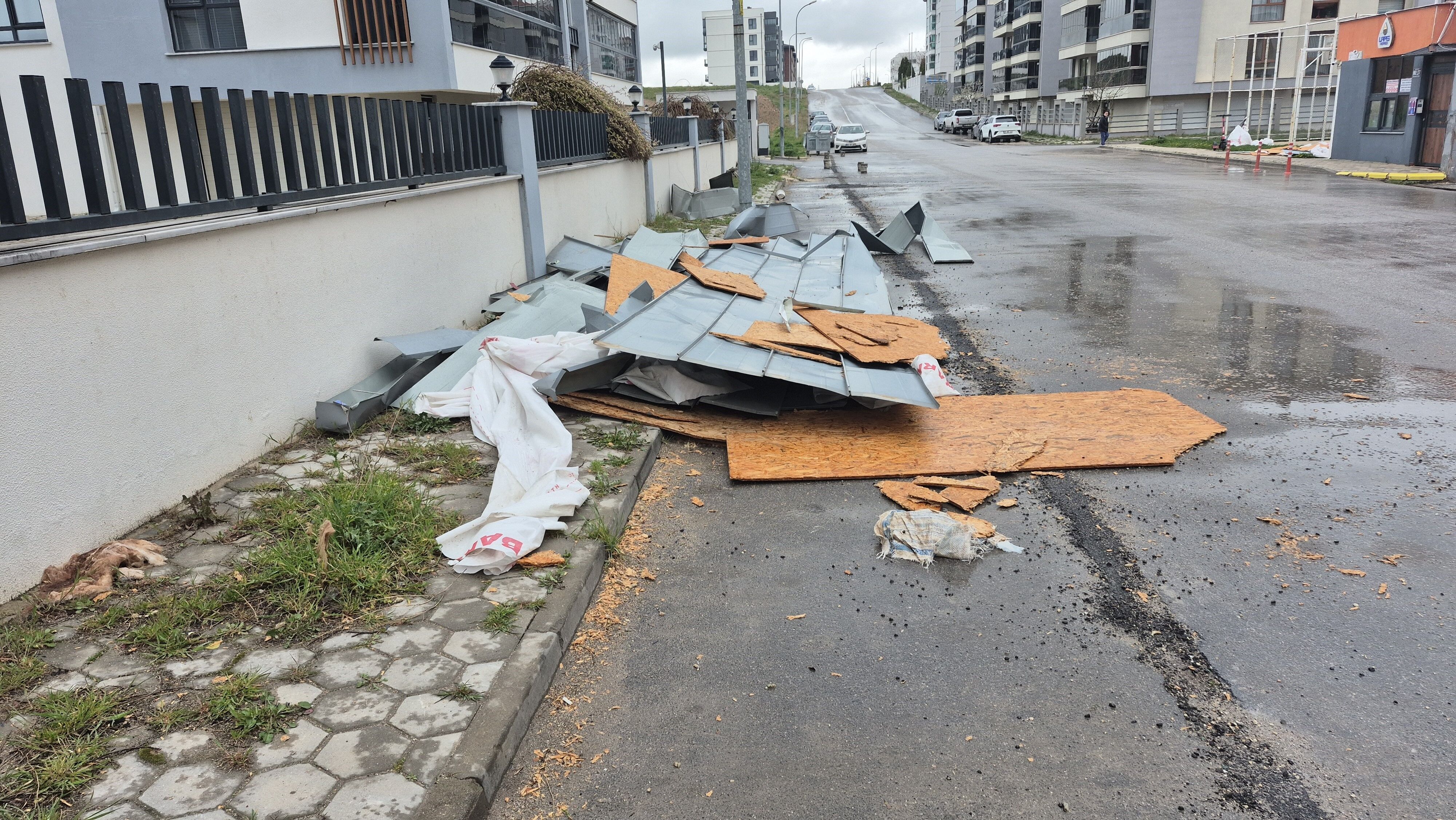 Kopan çatı parçaları savrularak sokağa düştü. O sırada sokaktan kimsenin geçmemesi olası bir faciayı önledi. Parçaların park halindeki araçlara zarar verdiği, bazı parçaların ise çevredeki binaların cephelerine saplandığı görüldü.