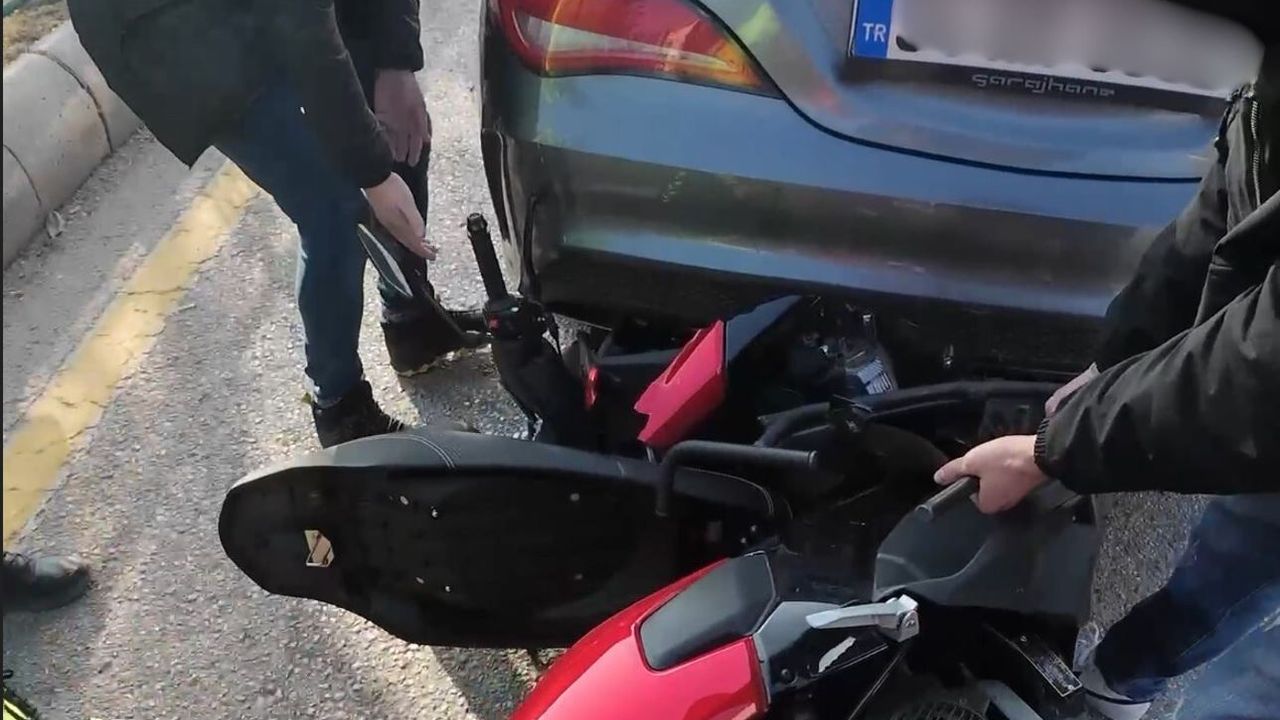 Eskişehir Odunpazarı’nda meydana gelen kazada, bir aracın altına sıkışan motosiklet, başka bir sürücünün müdahalesiyle çıkarıldı. Kaza, Vişnelik Mahallesi Atatürk Bulvarı üzerinde yaşandı. Yaya geçidinde yayaya yol vermek isteyen otomobile, duramayarak çarpan motosiklet arkadan çarptı. Çarpmanın etkisiyle motosiklet aracın altına girerken, sürücü yaralandı ve sağlık ekipleri tarafından hastaneye kaldırıldı. Olayı fark eden Fırat Ulaş isimli başka bir motosiklet sürücüsü, çevredekilerin desteğiyle sıkışan motosikleti çıkarıp kazalı aracı güvenli bir noktaya çekti. Kontak anahtarını polise teslim eden Ulaş’ın müdahalesi, kask kamerası tarafından kaydedildi ve anbean görüntülendi.