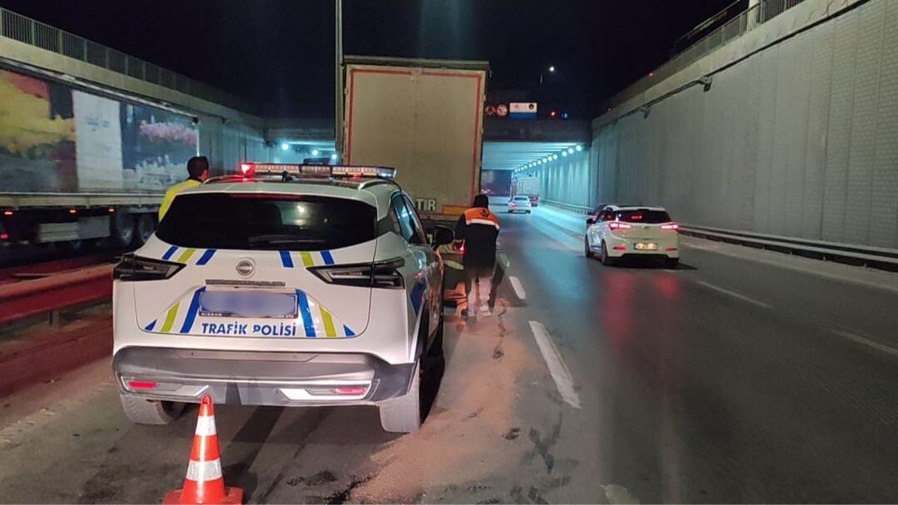 Olay, Eskişehir-Ankara Karayolu Alpu Alt Geçidi’nde yaşandı. Ankara yönüne giden tırın lastiği seyir halindeyken patladı, sürücü aracı kontrol ederek güvenli bir noktada durdurdu. Şans eseri herhangi bir kaza yaşanmazken, sürücü aracı kontrollü şekilde durdurarak güvenli alana aldı. İhbar üzerine bölgeye gelen trafik ekipleri, olası bir kazanın önüne geçmek amacıyla trafiği kontrollü şekilde sağladı. Olay yerine çağrılan teknik servis tarafından tırın patlayan lastiği değiştirildi. İşlemlerin tamamlanmasının ardından TIR yoluna devam etti.