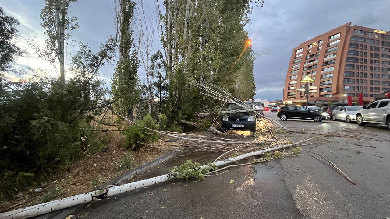 Eskişehir’in Tepebaşı ilçesinde rüzgarın etkisiyle kırılan ağaç dalları, park halindeki bir aracın üzerine düşerek maddi hasara yol açtı.