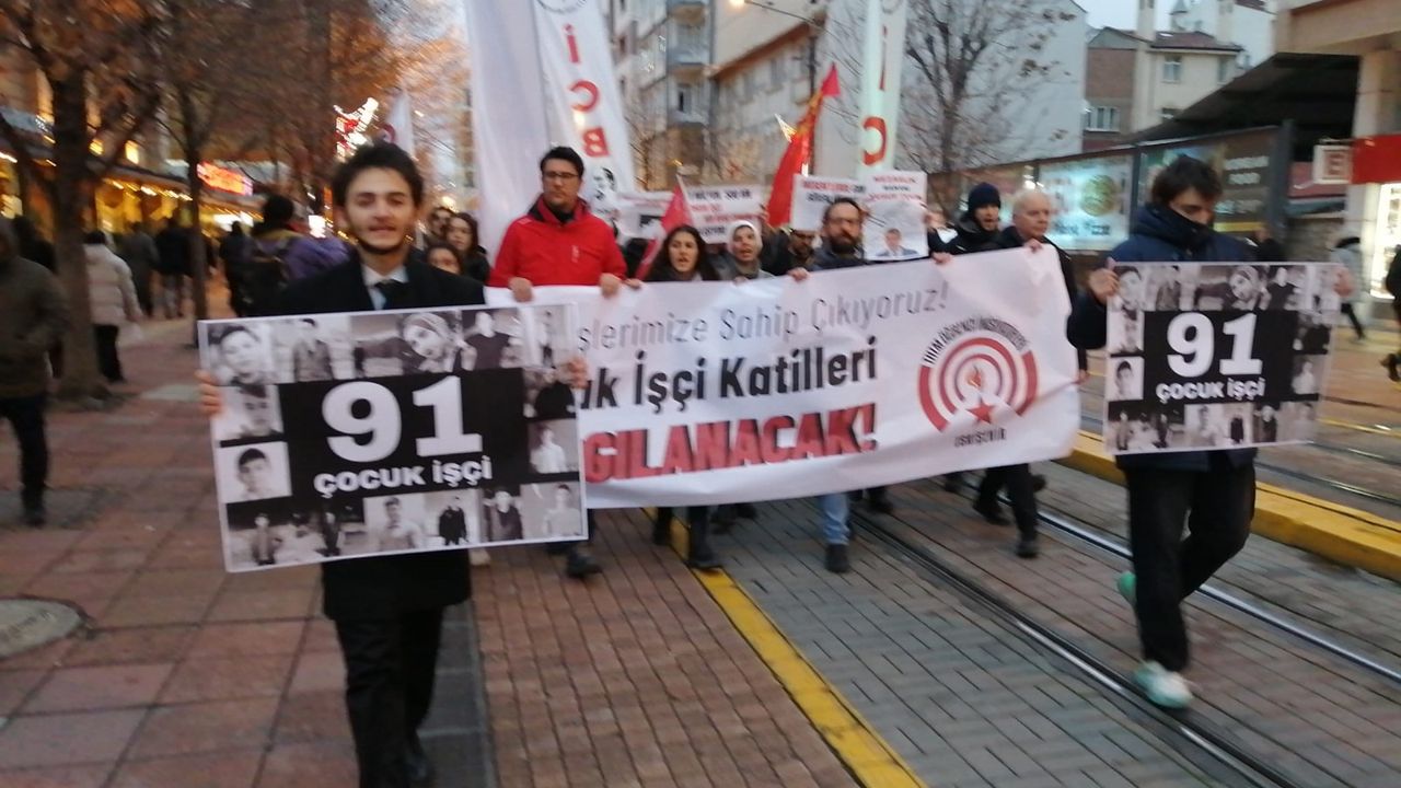 Çocuk işçiliğinde ölümlerin artmasının ülkede dikkate alınmamasına isyan eden katılımcıların düzenlediği yürüyüş, Porsuk Bulvarı Adalar mevkiinde son buldu. Sloganlar eşliğinde yürüyen ve çoğunluğunu gençlerin oluşturduğu grup, Mesleki Eğitim Merkezinin kapatılması için çağrıda bulundu. Eskişehir’de son günlerde bir sendika tarafından yapılan açıklamada yürüyüşü organize eden öğrencilerden nasibini aldı. Geride kalan bir yıl içerisinde 91 çalışan çocuğun hayatını kaybettiğini belirten Eğitim-İş Sendikası Şube Sekreteri Ergin Kurşun “Bugün burada 2025 yılı içinde iş yerlerinde hayatını kaybeden çocukları konuşmak için toplandık. Oyun oynaması gereken 91 çocuğumuz iş yerlerinde, fabrikalarda, tarlalarda, inşaatlarda çalışırken hayatını kaybetti. Türkiye işçi sınıfının yüzde 10'unu çocuk işçiler oluşturuyor. Bu korkunç bir orandır. Çocuklarımız patronlar için ucuz hatta bedava iş gücü haline getiriliyor. Çocuklarımıza iş yerlerinde yetişkin insanların yapabileceği işler yaptırılıyor. Bir yerde sermaye sınıfının çıkarları varsa; orada çocuklara sömürü var, ölüm vardır. Çocuklarımız için, sermaye düzenine karşı mücadeleyi büyütelim” dedi.