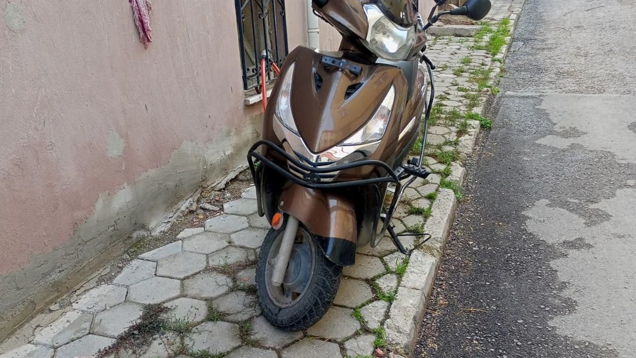 Kaldırımın altıgen taşlarla döşeli yapısı ve aralardaki otların büyümüş olması nedeniyle yürüyüş yüzeyi zaten düzensiz bir hal almış durumda. Motosikletin bu alana park edilmesi, dar sokakta geçişi daha da güçleştiriyor. Sokakta karşıdan karşıya geçen yayaların dikkatli adım atması gerekiyor.