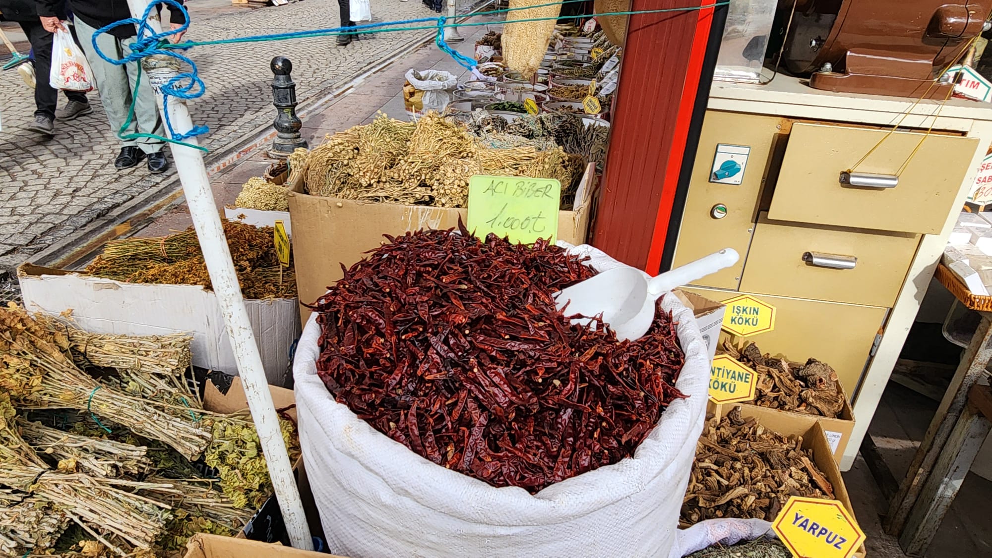 Eskişehir’de pazarlarda ve aktarlarda satılan kurutulmuş acı biberin kilosu 1000 TL’ye ulaştı. Baharat tezgâhlarında yerini alan yeni fiyatlar, alışveriş yapan vatandaşların dikkatinden kaçmadı. Daha önce küçük miktarlarla rahatça alınabilen ürün, artık gram hesabıyla satılmaya başladı.