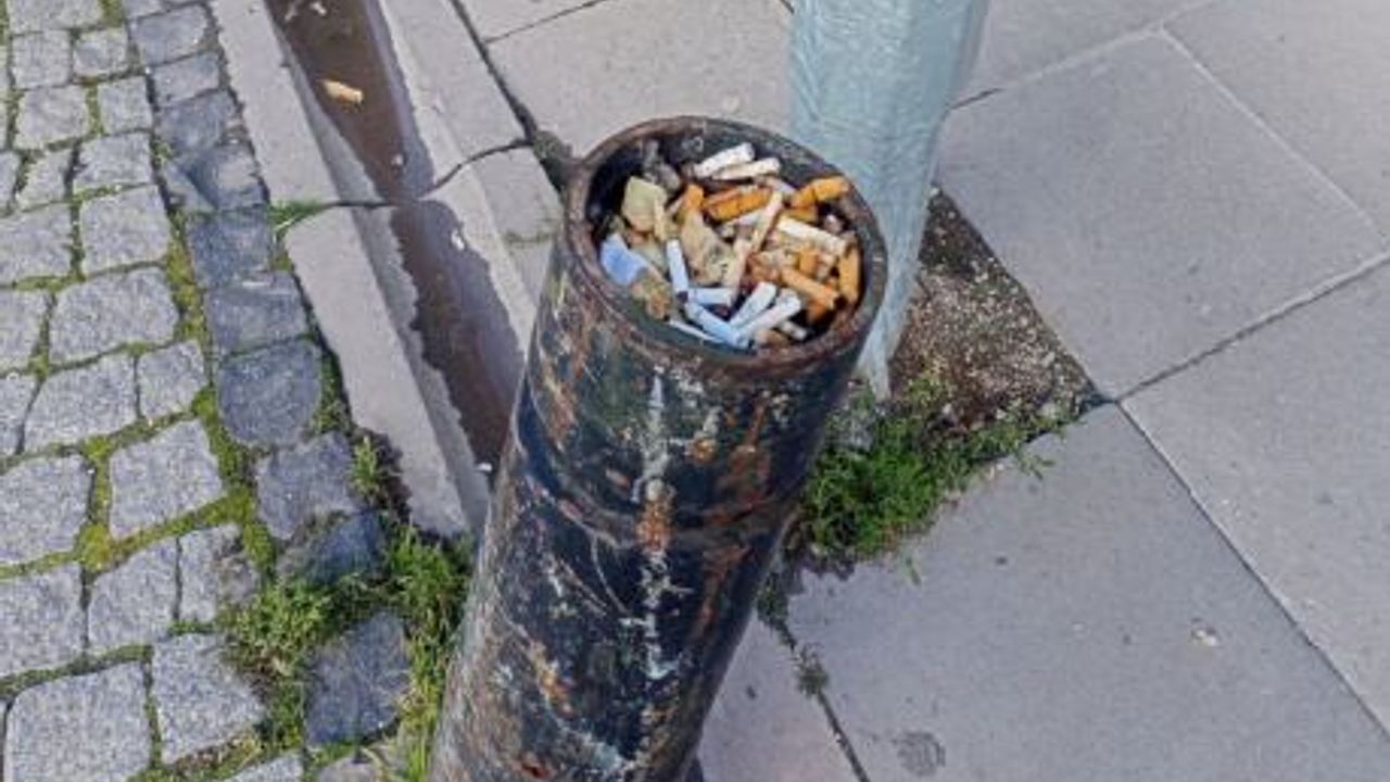 Eskişehir’in 2 Eylül Caddesi üzerinde bulunan kırık bir duba, zamanla sigara izmaritlerinin biriktiği bir noktaya dönüştü. Duba içerisinin izmaritlerle dolduğu görülürken, çevresindeki kaldırımda da benzer atıklar dikkat çekti.
