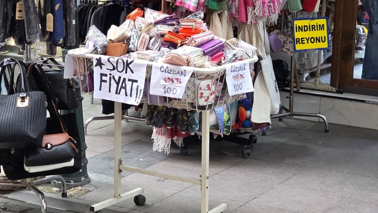 Kışlık bere, şemsiye, şal ve çanta gibi ürünlerin de sergilendiği dükkanın önünde en çok ilgiyi indirimli cüzdan reyonu gördü. Fiyatın 100 liraya kadar çekilmesini fırsat bilen vatandaşlar, tezgahtaki ürünleri tek tek inceleyerek hem kendileri hem de yakınları için alışveriş yaptı.