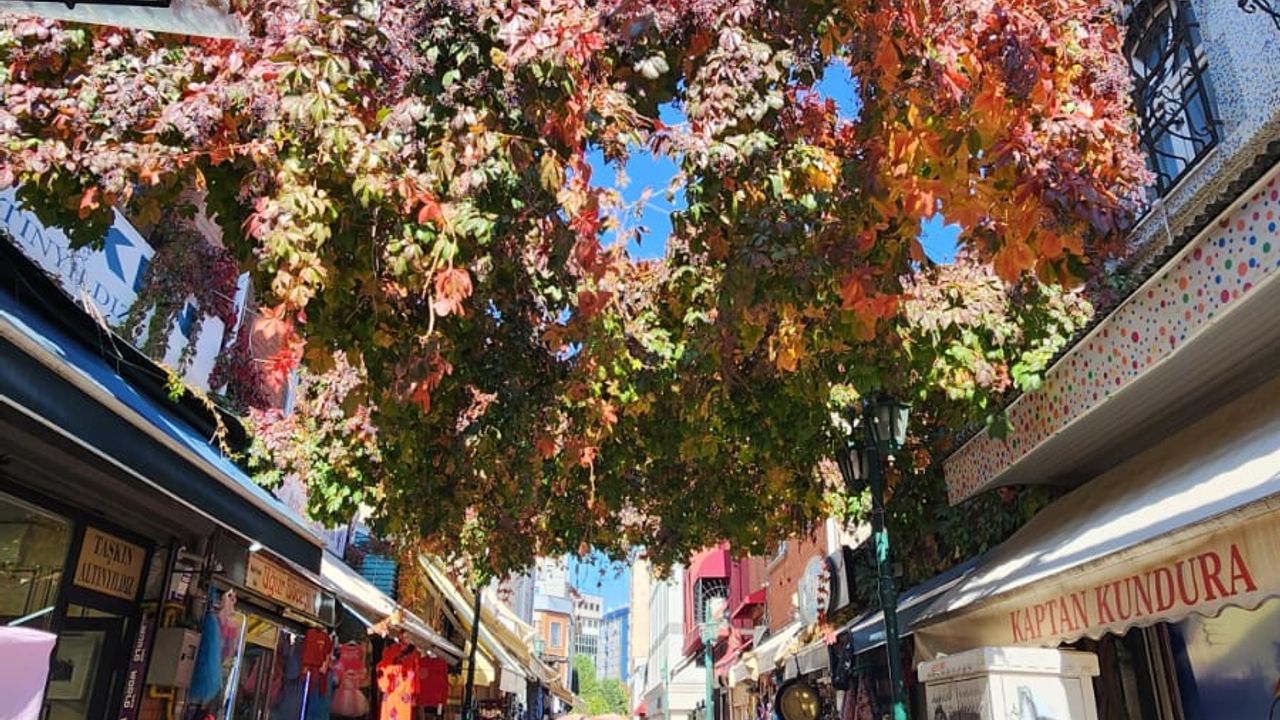 Sonbaharın renklerine bürünen sarmaşıklar, Eskişehir’in tarihi sokaklarında adeta kartpostallık görüntüler oluşturuyor. Rengarenk yapraklarıyla binaların cephelerini ve sokak üzerini süsleyen sarmaşıklar, hem esnafın hem de vatandaşların beğenisini topluyor. Doğayla iç içe bu estetik görüntü, alışverişe çıkan vatandaşlara huzurlu bir atmosfer sunarken, fotoğraf tutkunlarının da ilgisini çekiyor. Esnaf, bu manzaranın bölgeye ayrı bir canlılık kattığını belirterek, sokakların dört mevsim bu güzellikte kalmasını diledi.