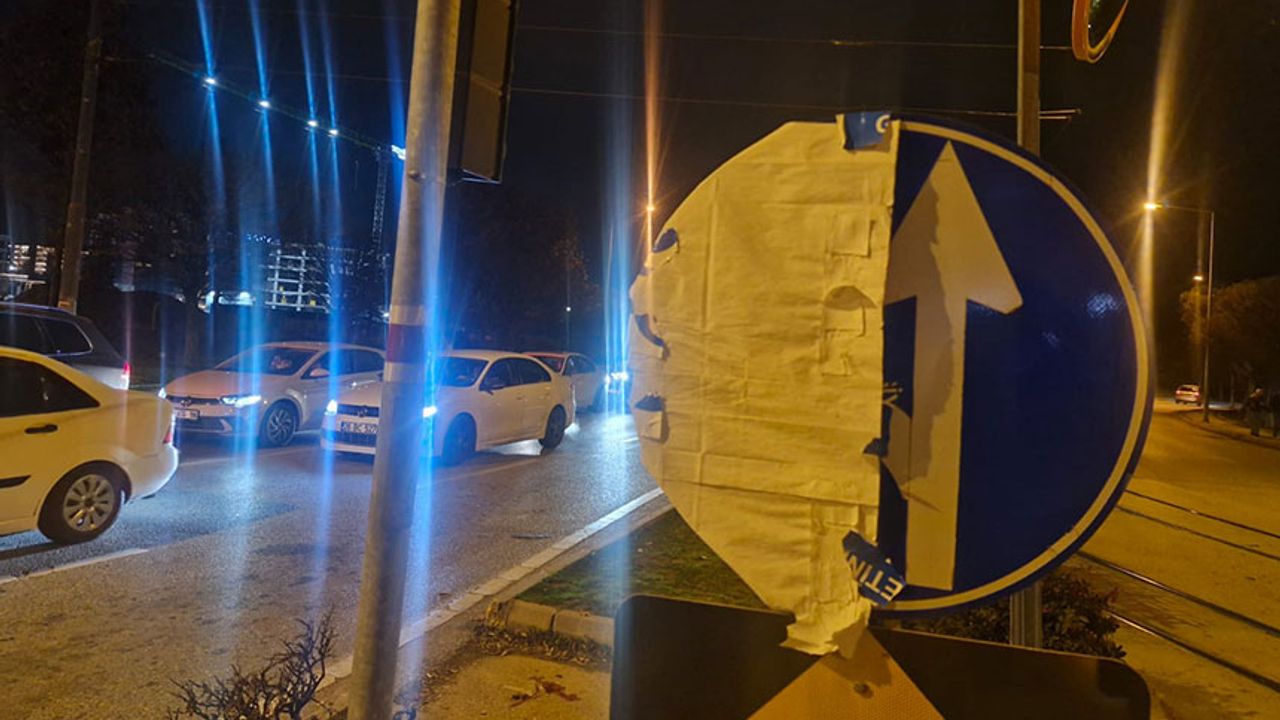 Eskişehir’in Odunpazarı ilçesine bağlı Doğruer Sokak’ta sürdürülen altyapı çalışmaları nedeniyle trafikte geçici düzenlemeye gidildi. Çalışmalar kapsamında sokak üzerindeki sola dönüş güzergâhı geçici olarak araç trafiğine kapatıldı. Sürücülerin yönlendirilmesi amacıyla yapılan düzenlemede, mevcut yön levhasının kâğıtla kapatılması ise dikkatlerden kaçmadı.