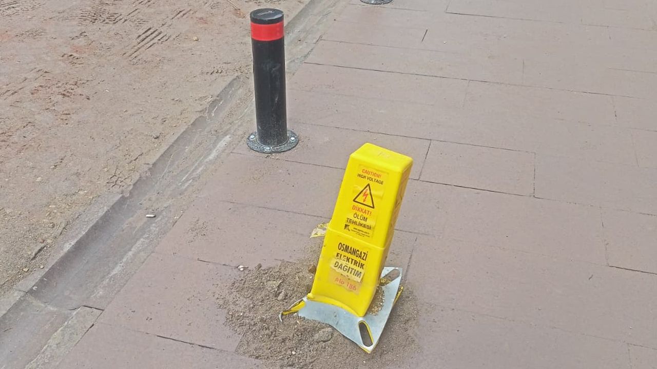 Eskişehir’in İstiklal Mahallesi’nde bir sokakta, elektrik hattına ait uyarı ekipmanının yolun ortasında bırakılması dikkat çekti. Üzerinde “Dikkat! Elektrik tehlikesi” yazan levhanın çevresinde herhangi bir koruyucu bariyer bulunmaması, olası kazalara davetiye çıkaran bir görüntü oluşturdu.
