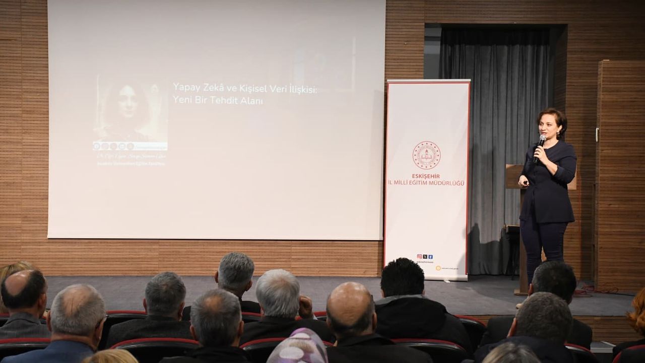 Eskişehir İl Millî Eğitim Müdürlüğü’nün organizasyonuyla Gülay Kanatlı Ortaokulu’nda gerçekleştirilen “Yapay Zekâ ve Kişisel Verilerin Korunması (KVKK) Eğitimi” konulu panel, yoğun katılımla yapıldı. Etkinlikte, dijitalleşen dünyada bireysel farkındalığın ve veri güvenliğinin önemi ön plana çıktı. Panelin açılış konuşmasını yapan İl Millî Eğitim Müdür Yardımcısı Muammer Demirkan, dijital dönüşüm sürecinde eğitim camiasının yapay zekâ ve kişisel verilerin korunması konularında bilinçli hareket etmesinin kritik olduğunu vurguladı. Demirkan, bu farkındalığın hem öğrenciler hem de eğitimciler açısından hayati önem taşıdığına dikkat çekti.