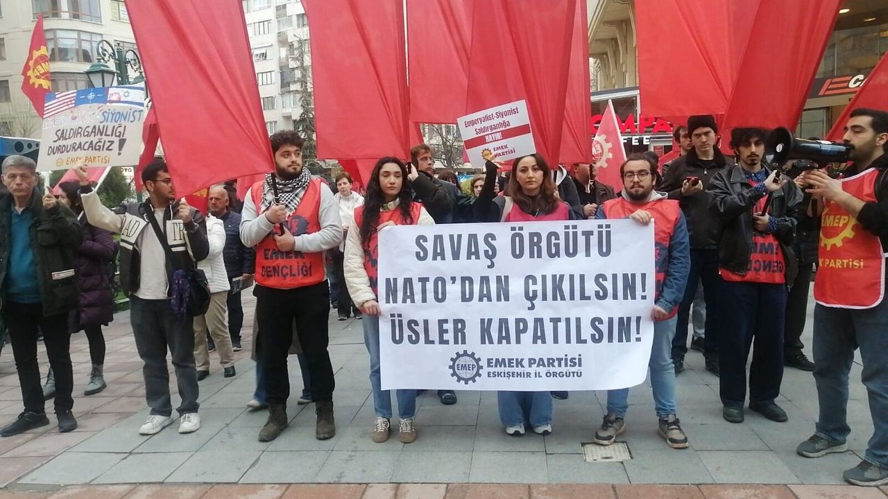 Türkiye’de bulunan NATO üslerinin derhal kapatılması için Eskişehir’den çağrıda bulunan İl Başkanı Kökoğlu “Türkiye bu savaşa çekildiği an daha beter olacak. Bu savaşta petrol, silah tekelleri kazanıyor. Bütün ülkelerin işçileri daha da fakirleşecek, halk ölümleri artacak. Daha fazla NATO’culuk daha fazla borçlanma, yoksulluk ve vergi yükü demektir. NATO üyeliği halkın güvenliği değil sürekli olarak savaş tehdidinin garantisidir. Ülkenin güvenliği NATO üsleriyle değil, halkların barış içinde yaşamasını garanti altına alacak politikalarla sağlanmalıdır. NATO’dan çıkılmalı, ülkedeki üsleri biran önce kapatılmalıdır. NATO, dağıtılmalıdır. Geleceğimiz ABD ve NATO işbirlikçiliğinde değil, kendi ellerimizdedir” diye konuştu. NATO’yu protesto eylemi 1 Mayıs emekçi bayramı kutlamalarına katılım çağrısının yapılmasıyla son buldu.