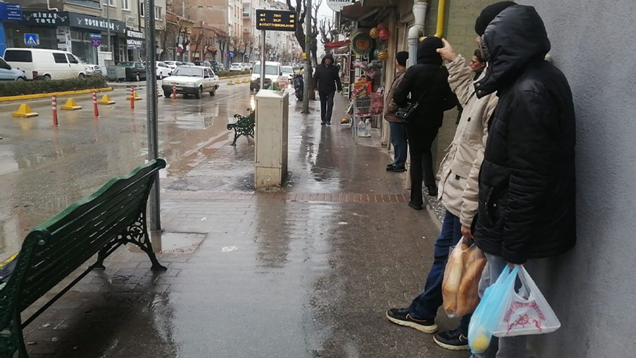 Gün boyu devam eden yağmur altında gidecekleri yere hareket eden otobüs duraklarına gelen vatandaş sırılsıklam ıslandı. Bir türlü kapatılmayan kent içi araçların geçiş yaptığı duraklarda her yağışlı günde olduğu gibi yine vatandaş çile çekti. Yağmurdan korunmaya çalışan Eskişehirliler, binaların girişleri ile çatı altlarına sığınarak otobüslerin gelmesini bekledi.