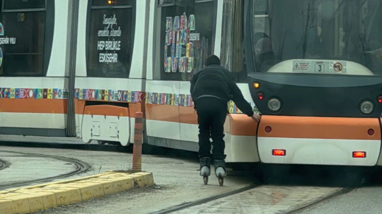 Tramvayın hızına ayak uydurmaya çalışan çocuk, herhangi bir güvenlik önlemi almadan metrelerce yol kat etti. Dengesini kaybetmesi halinde ciddi şekilde yaralanabileceği anlar, çevrede bulunan vatandaşlarda büyük tedirginlik yarattı.