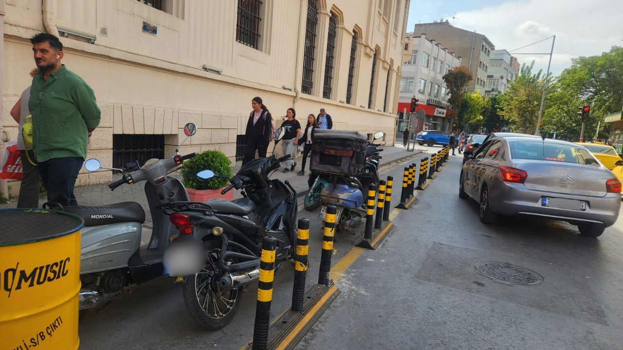 Yayaların güvenliği ve trafik akışını düzenlemek amacıyla konulan dubaların yanına park edilen motosikletler, hem görüntü kirliliğine yol açıyor hem de yayaların geçişini zorlaştırıyor.