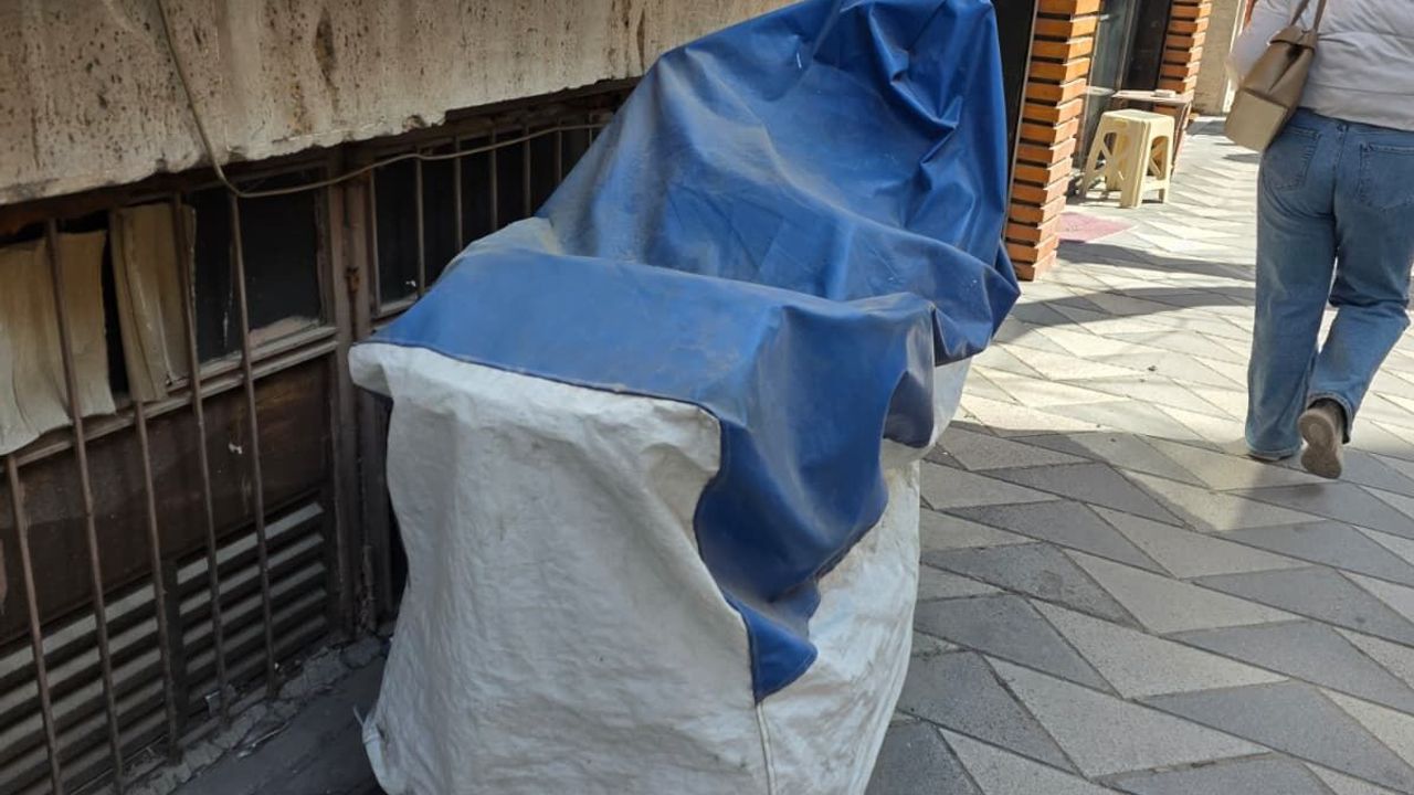Mavi ve beyaz renkli, tozlanmış bir branda ile tamamen örtülen motosikletin, altına yerleştirilen demir koruma aparatıyla sabitlendiği görülüyor. Yoğun yaya trafiğinin bulunduğu bölgede, uzun süredir yerinden kıpırdatılmayan araçla ilgili çevre esnafı şu detayları aktarıyor: Aracın tekerlek çevresinde biriken toz ve brandanın üzerindeki kir tabakası, uzun süreli bir park haline işaret ediyor. İşlek bir caddede bu denli kapalı ve sahipsiz görünen bir nesnenin bulunması, bazı vatandaşlarda tedirginlik yaratıyor. Aracın, yaya geçişini doğrudan engellemese de bina girişine yakınlığı dikkat çekiyor. Çevredeki vatandaşlar, motosikletin sahibine ulaşılamaması durumunda yetkililerin inceleme yapmasını bekliyor. Görgü tanıkları, “Günlerdir aynı yerde duruyor, kimin olduğunu bilmiyoruz. Üstü kapalı olduğu için ne olduğunu da tam anlayamıyoruz, bu durum biraz tedirgin edici,” ifadelerini kullandı.