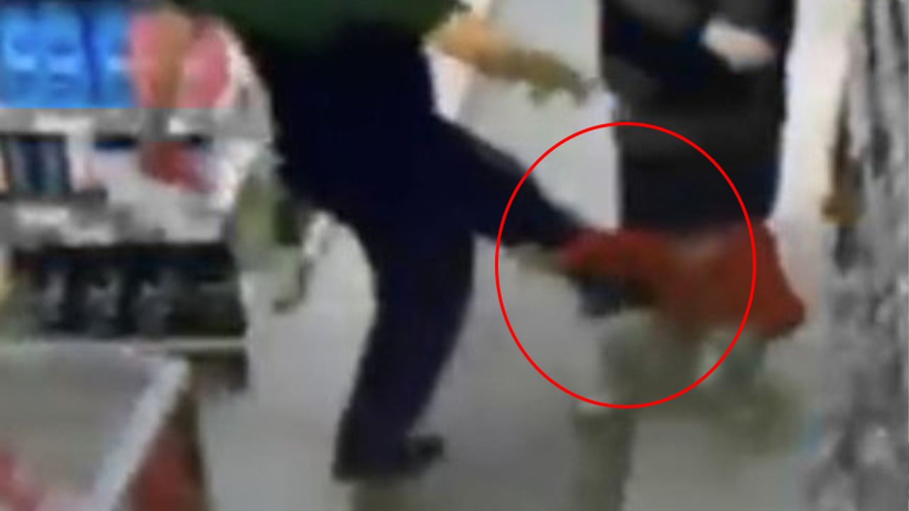İddiaya göre, kimliği henüz belirlenemeyen bir şahıs, raflara dönük olan küçük bir erkek çocuğuna defalarca tekme attı.