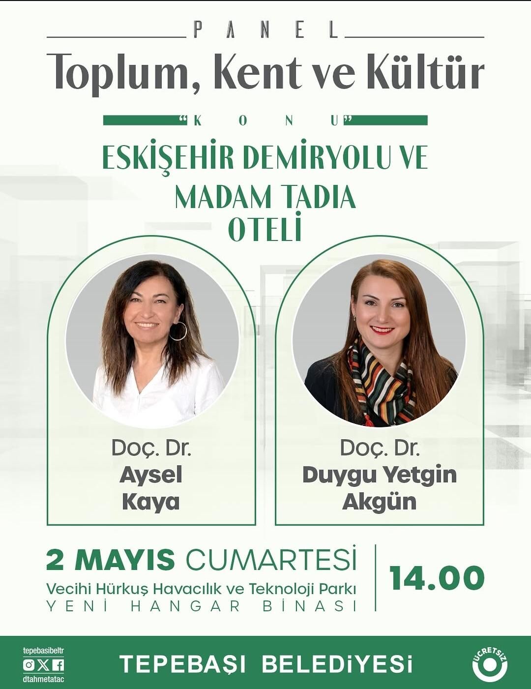 2 Mayıs Cumartesi günü saat 14.00’te Vecihi Hürkuş Havacılık ve Teknoloji Parkı Yeni Hangar Binası’nda gerçekleştirilecek etkinlik, tüm vatandaşların katılımına açık olacak. Panelde, Eskişehir’in kent belleğine dair önemli bilgilerin paylaşılması ve geçmişten günümüze uzanan kültürel izlerin ele alınması hedefleniyor.