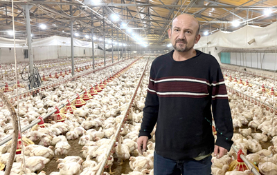 Zonguldaklı Yücel Cıplak, 30 yıldır Eskişehir’de, son 20 yıldır ise Mihalgazi’de yaşıyor. Cıplak, Mihalgazi Belediyesi’ne bağlı tavuk çiftliğinde görev yapıyor. “Şu an kümeslerde yaklaşık 33 bin 500 hayvanımız var” diyen Cıplak, üretim sürecini şöyle anlatıyor: “Civcivler yumurtadan çıkar çıkmaz kümese alınıyor. İlk etapta zemin hazırlanıyor, altlık seriliyor. İlk bir hafta yem ve su elle veriliyor. Sonrasında günlük kontrollerle büyüme takip ediliyor. Civcivler ilk haftalarda günde ortalama 30 gram, ilerleyen süreçte 50–100 gram arasında kilo alıyor. Ortalama 40–41 gün sonunda kesim aşamasına geliyorlar. Kesimden sonra kümesin temizliği ve hazırlanması yaklaşık 15–16 gün sürüyor. Bu sürenin ardından yeni civcivler geliyor ve döngü yeniden başlıyor. Bu iş zor ama severek yapınca zorluğu kalmıyor. İçerideki civcive evdeki bebeğe bakar gibi bakman gerekir. Maddi ya da manevi eksik ilgilenirsen, karşılığını alırsın. Sürekli kontrol şart. Sabah 08.00’de başlayan mesai çoğu zaman gece yarısına kadar sürüyor. Kümeslerde otomatik yem sistemi kullanılıyor. Sensörlü sistem sayesinde hayvanlar yem yedikçe hat yeniden doluyor ve süreç kendini sürekli dengeliyor. Yem tüketimi ise hayvanların büyümesine paralel artıyor. Civciv döneminde günlük 1–1,5 ton yem kullanılırken, büyüme döneminde bu miktar her gün 300–500 kilo artıyor. Kümes tam kapasiteye ulaştığında 34 bin tavuk günde yaklaşık 6 ton yem tüketiyor.”
