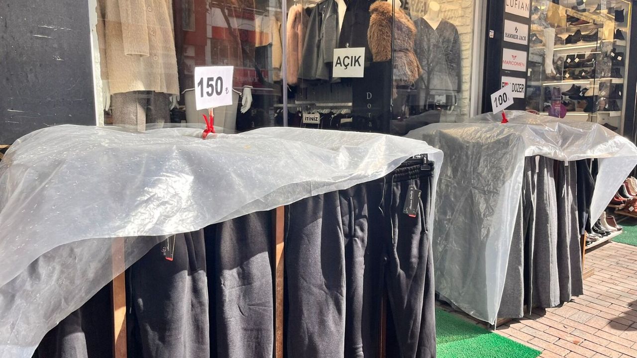 Eskişehir'de aralıklarla devam eden yağışlar, toz ve güneş özellikle açık alanda satış yapan işletmeleri doğrudan etkiliyor. Çarşı merkezinde birçok esnaf, vitrin önüne çıkardığı ürünleri korumak için muşamba ile örtüyor. Bu yöntem, hem ani bastıran sağanaklara karşı hızlı çözüm sunuyor hem de ürünlerin değer kaybetmesini engelliyor.
