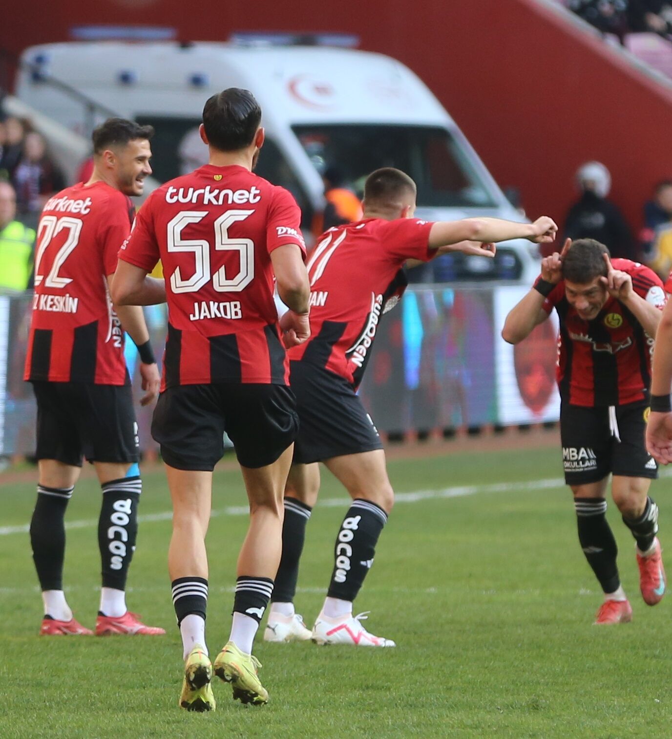 Eskişehirspor’un 7-0 galibiyetle ayrıldığı Bornova maçında attığı gollerin ardından futbolcuların yaptığı gol sevinçleri tribünlerin de ilgisini çekti. Futbolcular, İspanyol kültürünün sembollerinden biri olan matador temasını hatırlatan bir kutlama gerçekleştirdi.