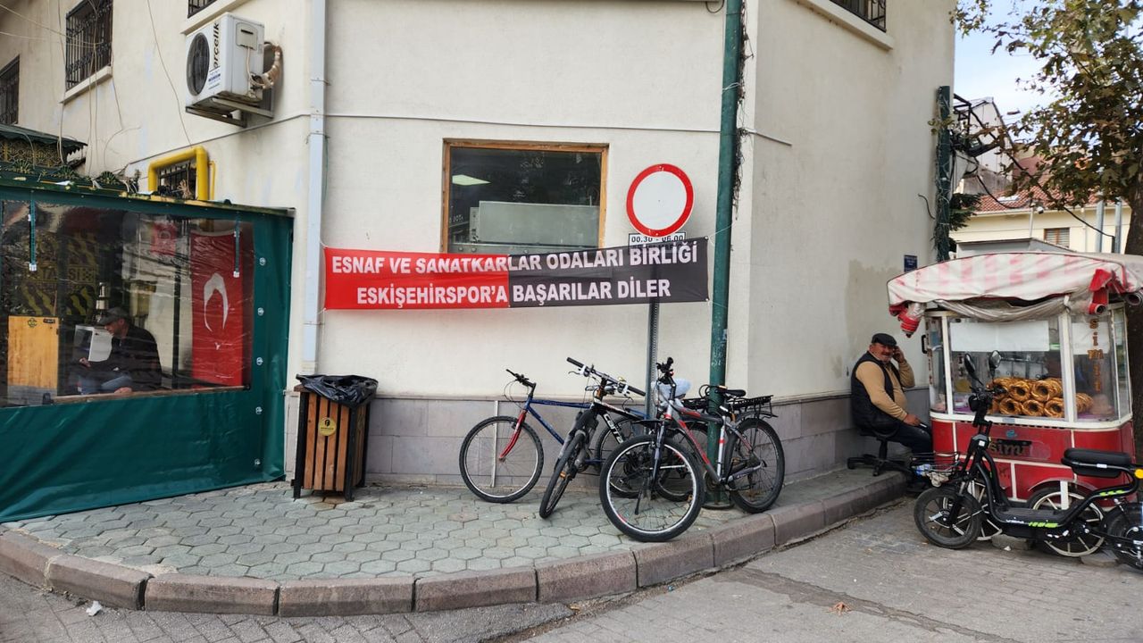 Eskişehir'in farklı noktalarına asılan pankartlarda, “Esnaf ve Sanatkârlar Odaları Birliği, Eskişehirspor’a başarılar diler” ifadeleri yer aldı.