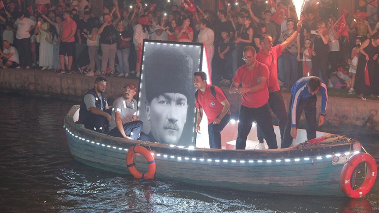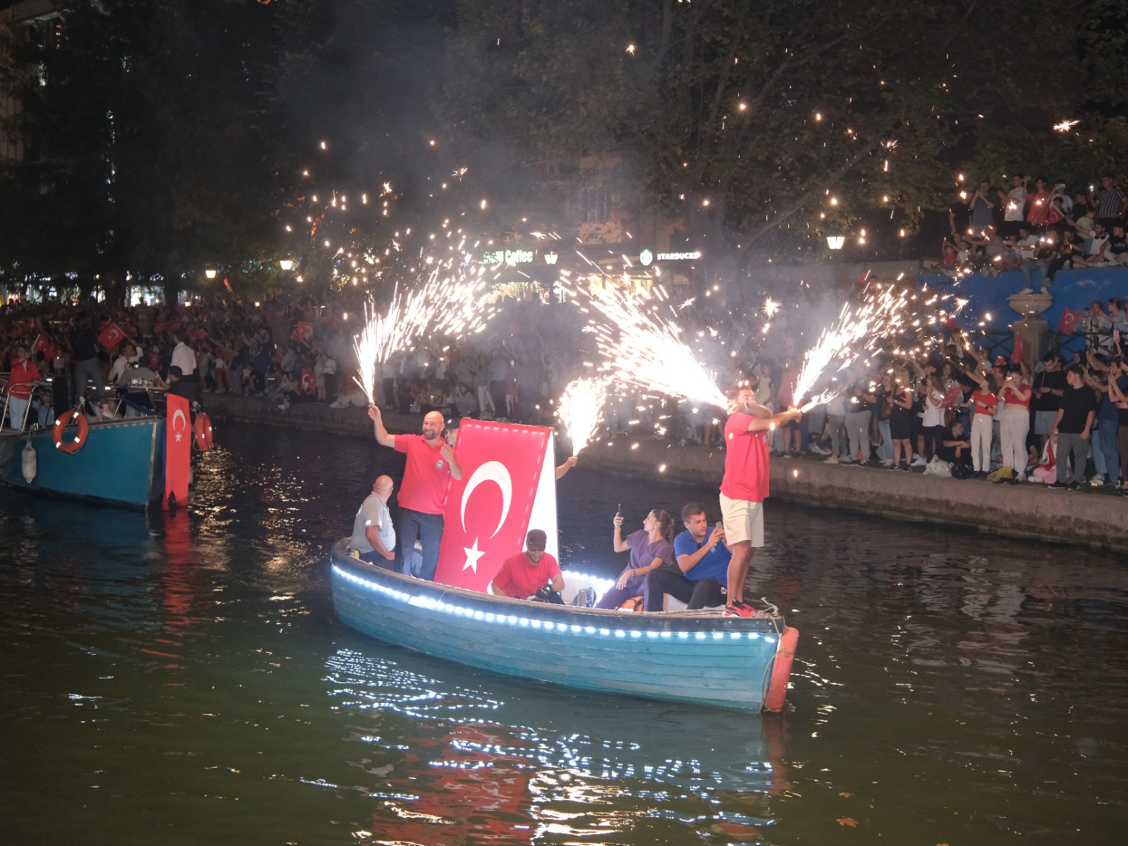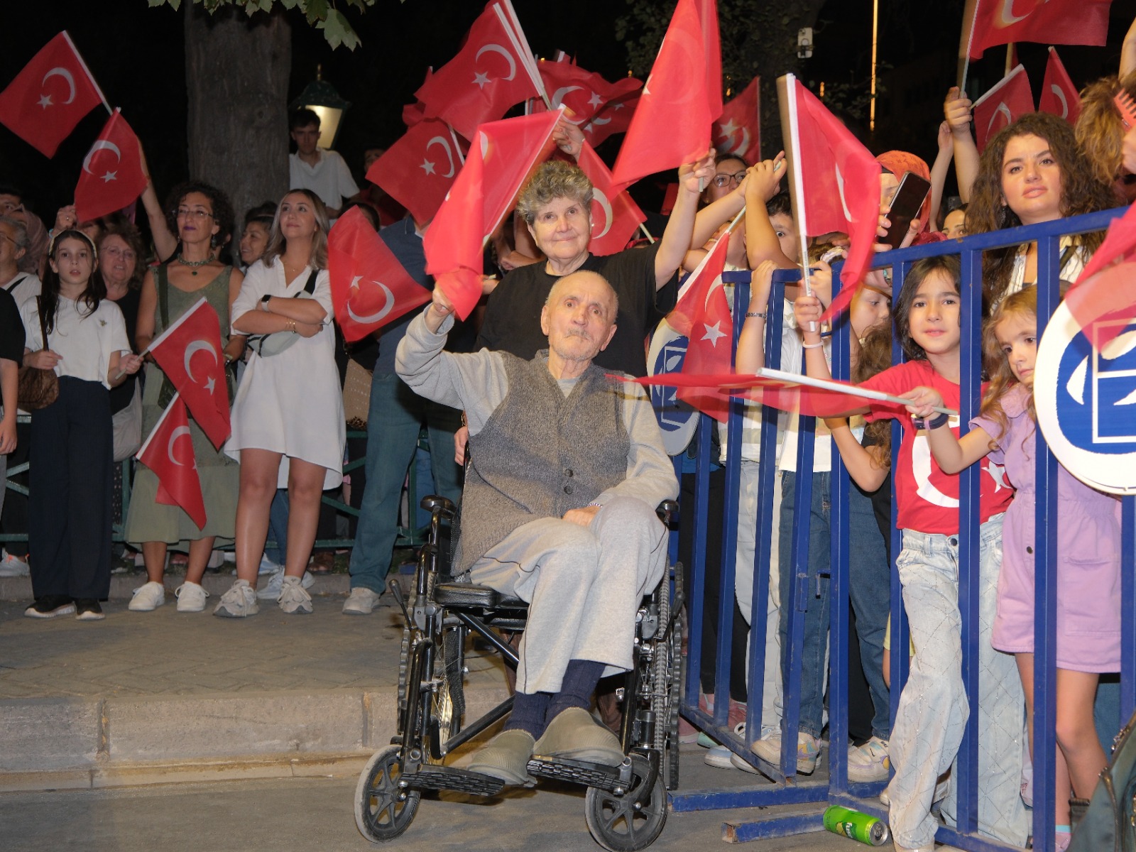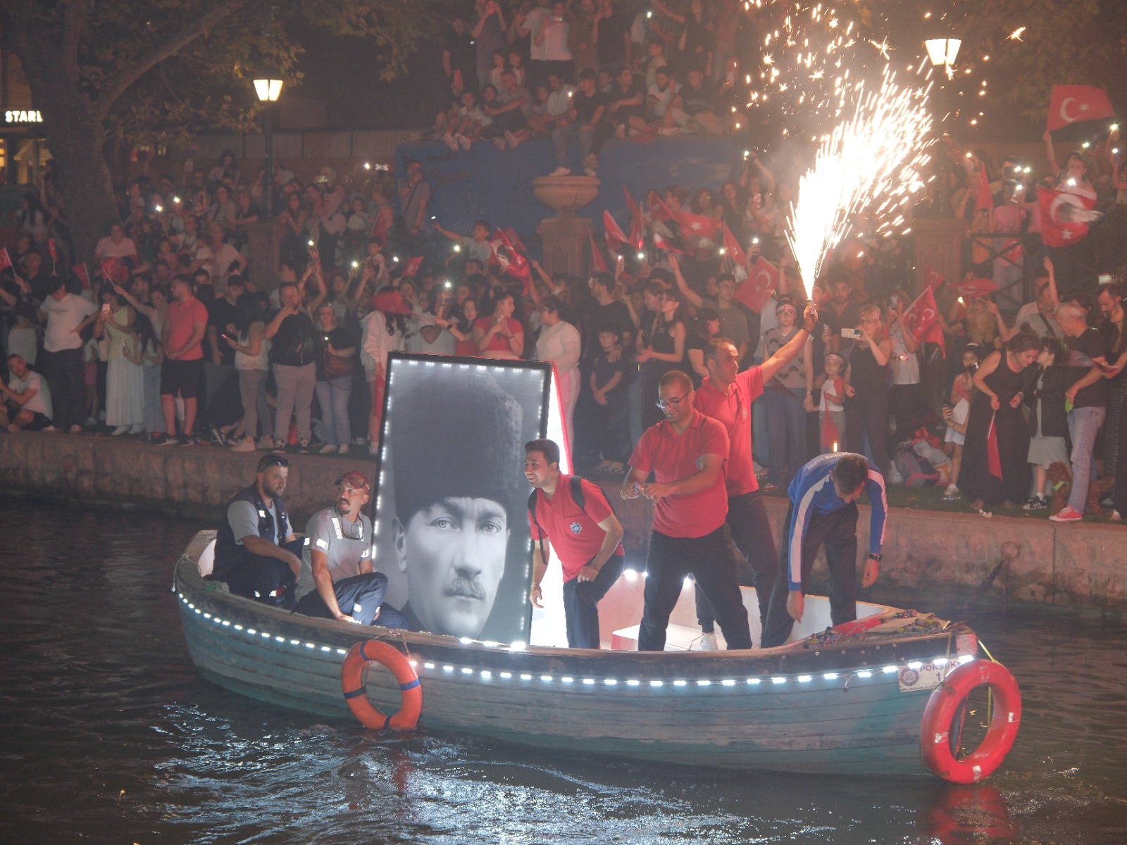 Düzenlenen Fener Alayı'na 7'den 70'e binlerce Eskişehirli akın etti. Köprüleri ve Porsuk kıyılarını dolduran kalabalık, yanan meşaleler ve cep telefonlarının ışıklarıyla geceyi aydınlatırken, sallanan ay yıldızlı bayraklarla şehri adeta kırmızıya boyadı.